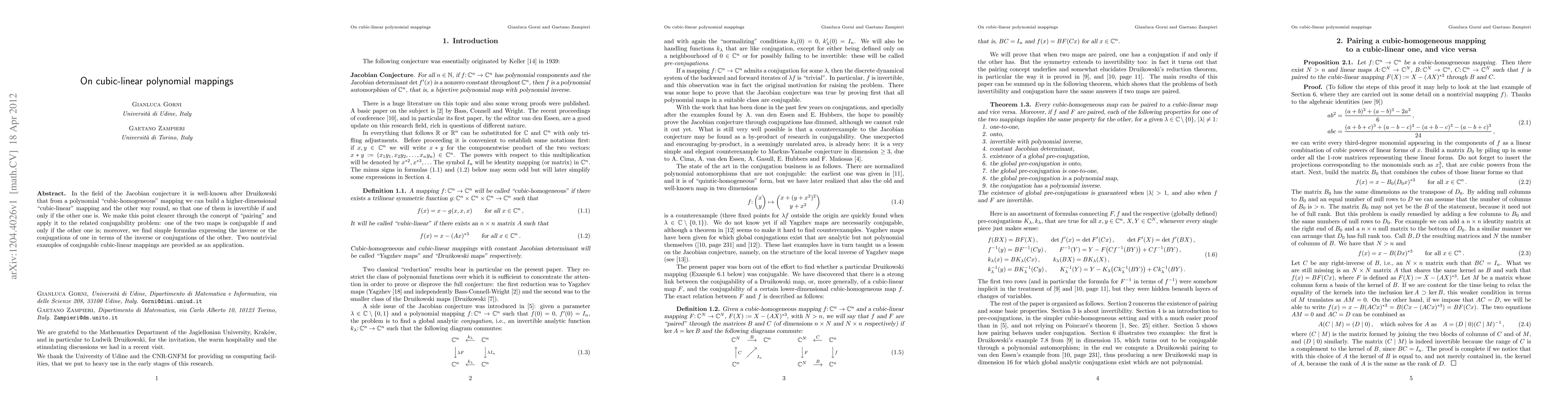 In the field of the Jacobian conjecture it is well-known after Druzkowski that from a polynomial "cubic-homogeneous" mapping we can build a higher-dimensional "cubic-linear" mapping and the other way round, so that one of them is invertible if and only if the other one is. We make this point clearer through the concept of "pairing" and apply it to the related conjugability problem: one of the two maps is conjugable if and only if the other one is; moreover, we find simple formulas expressing the inverse or the conjugations of one in terms of the inverse or conjugations of the other. Two nontrivial examples of conjugable cubic-linear mappings are provided as an application.