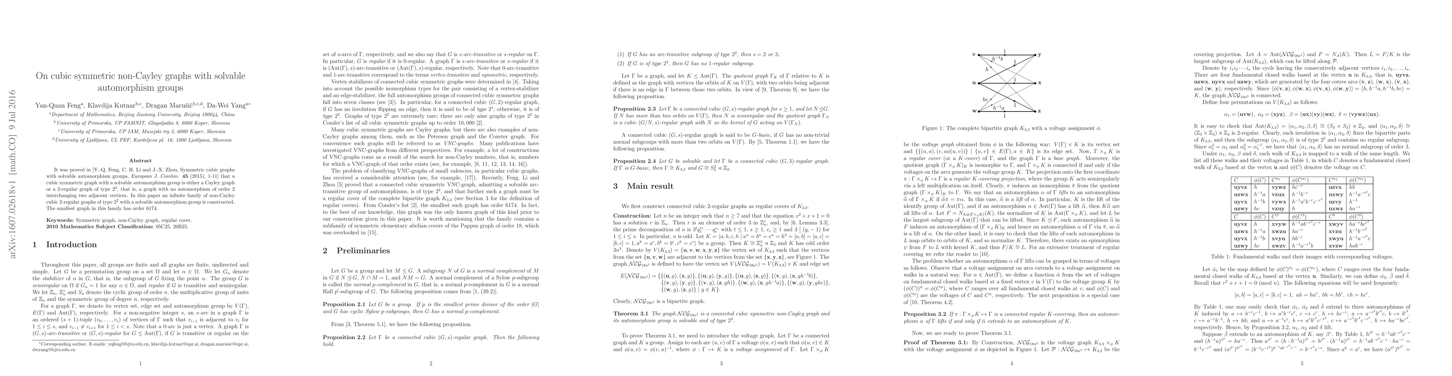 This paper constructs an infinite family of non-Cayley cubic 2-regular graphs of type $2^2$ with solvable automorphism groups, expanding on previous results that classified such graphs as either Cayley or of this specific non-Cayley form. The smallest graph in this new family has an order of 6174.
