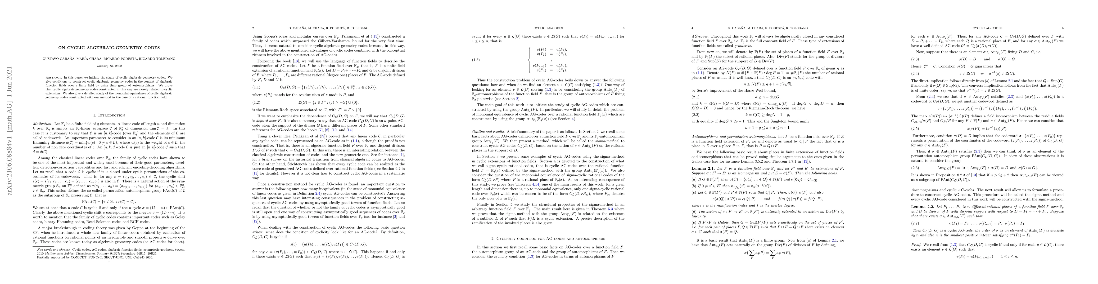 This paper introduces cyclic algebraic geometry codes in algebraic function fields over finite fields, constructed via their automorphism group, and demonstrates their relation to cyclic extensions. It further explores the monomial equivalence of these codes in the context of rational function fields.