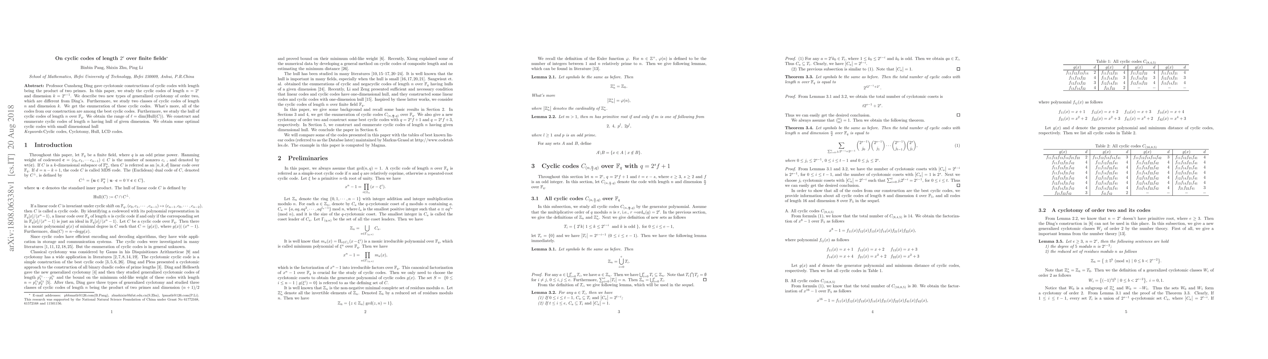 Professor Cunsheng Ding gave cyclotomic constructions of cyclic codes with length being the product of two primes. In this paper, we study the cyclic codes of length $n=2^e$ and dimension $k=2^{e-1}$. Clearly, Ding's construction is not hold in this place. We describe two new types of generalized cyclotomy of order two, which are different from Ding's. Furthermore, we study two classes of cyclic codes of length $n$ and dimension $k$. We get the enumeration of these cyclic codes. What's more, all of the codes from our construction are among the best cyclic codes. Furthermore, we study the hull of cyclic codes of length $n$ over $\mathbb{F}_q$. We obtain the range of $\ell=\dim({\rm Hull}(C))$. We construct and enumerate cyclic codes of length $n$ having hull of given dimension.