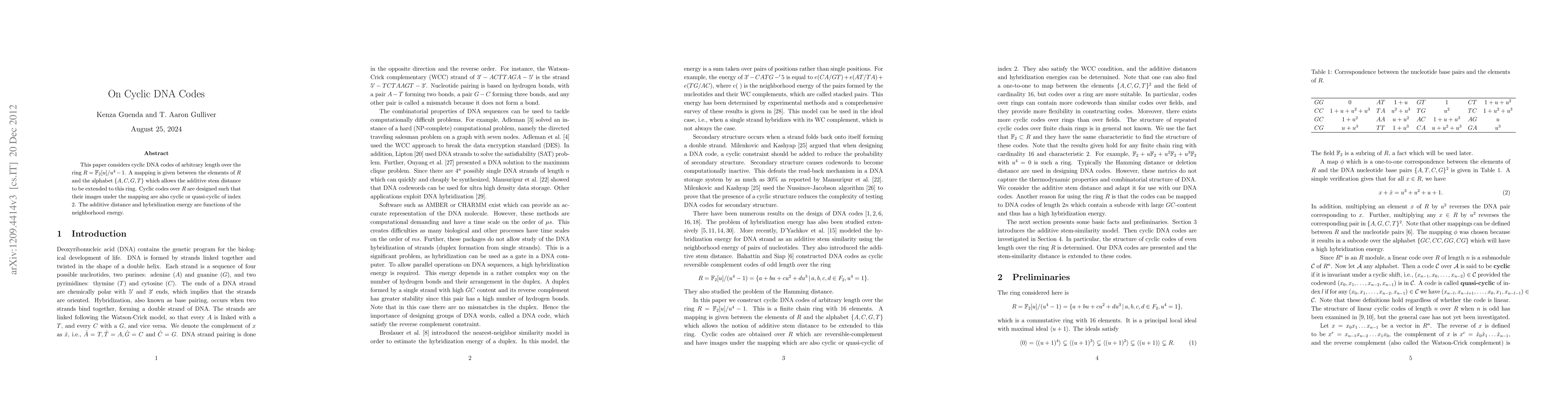 This paper explores cyclic DNA codes of arbitrary length over the ring $R=\F_2[u]/u^4-1$, mapping its elements to the DNA alphabet to extend the additive stem distance. It designs cyclic codes whose mapped images are cyclic or quasi-cyclic of index 2, linking additive distance and hybridization energy to neighborhood energy.
