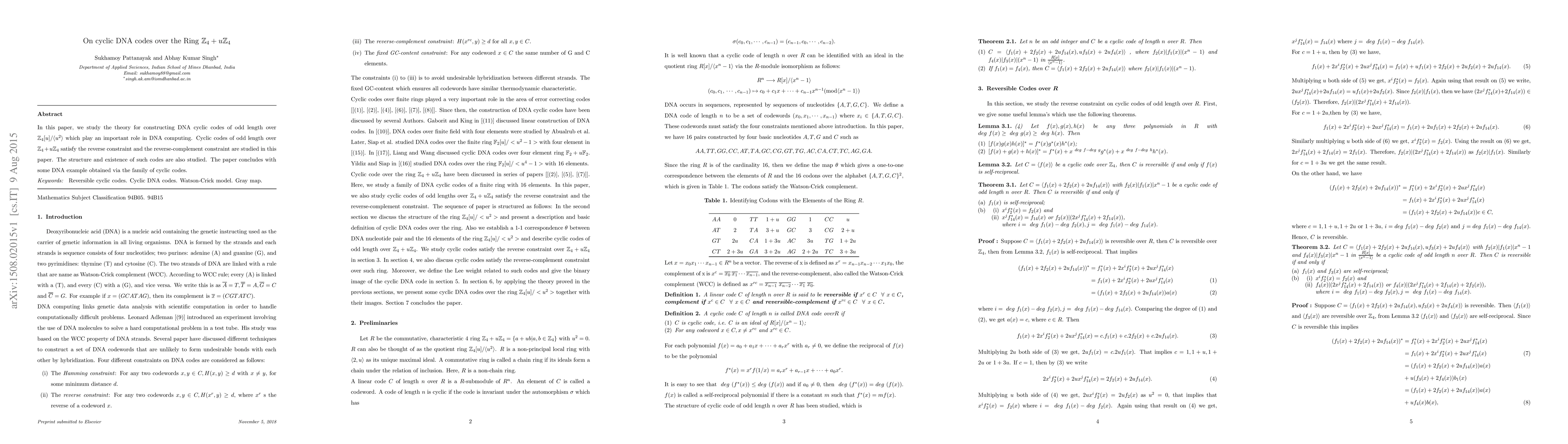In this paper, we study the theory for constructing DNA cyclic codes of odd length over $\Z_4[u]/\langle u^2 \rangle$ which play an important role in DNA computing. Cyclic codes of odd length over $\Z_4 + u \Z_4$ satisfy the reverse constraint and the reverse-complement constraint are studied in this paper. The structure and existence of such codes are also studied. The paper concludes with some DNA example obtained via the family of cyclic codes.