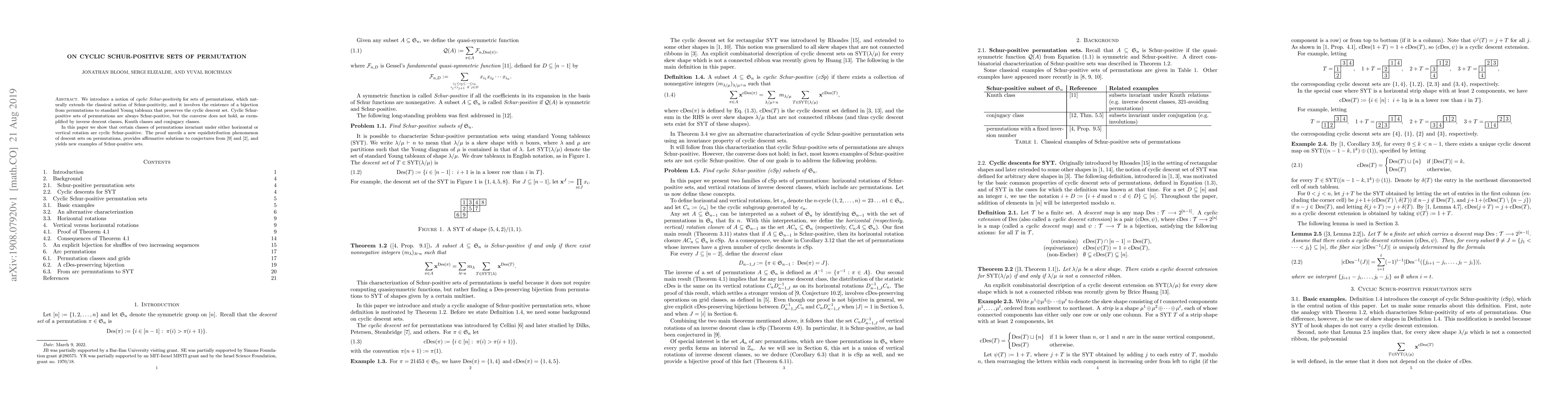 We introduce a notion of {\em cyclic Schur-positivity} for sets of permutations, which naturally extends the classical notion of Schur-positivity, and it involves the existence of a bijection from permutations to standard Young tableaux that preserves the cyclic descent set. Cyclic Schur-positive sets of permutations are always Schur-positive, but the converse does not hold, as exemplified by inverse descent classes, Knuth classes and conjugacy classes. In this paper we show that certain classes of permutations invariant under either horizontal or vertical rotation are cyclic Schur-positive. The proof unveils a new equidistribution phenomenon of descent sets on permutations, provides affirmative solutions to conjectures from [9] and [2], and yields new examples of Schur-positive sets.