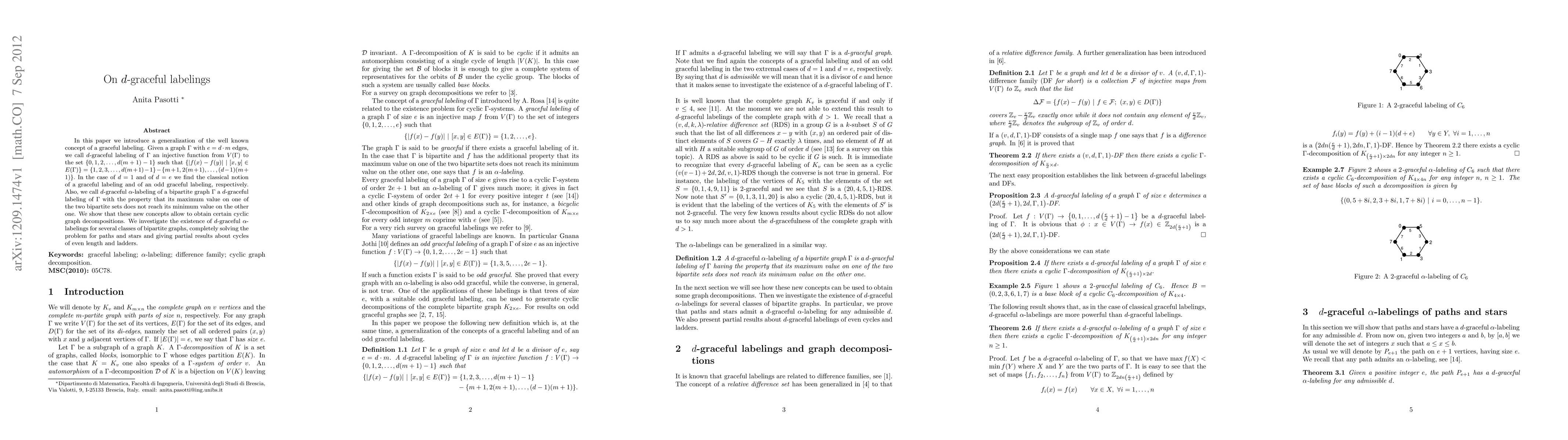This paper generalizes the concept of graceful labeling to d-graceful labelings for graphs with d times the number of edges. It introduces d-graceful α-labelings for bipartite graphs and explores their existence, providing complete solutions for paths and stars, and partial results for even-length cycles and ladders.