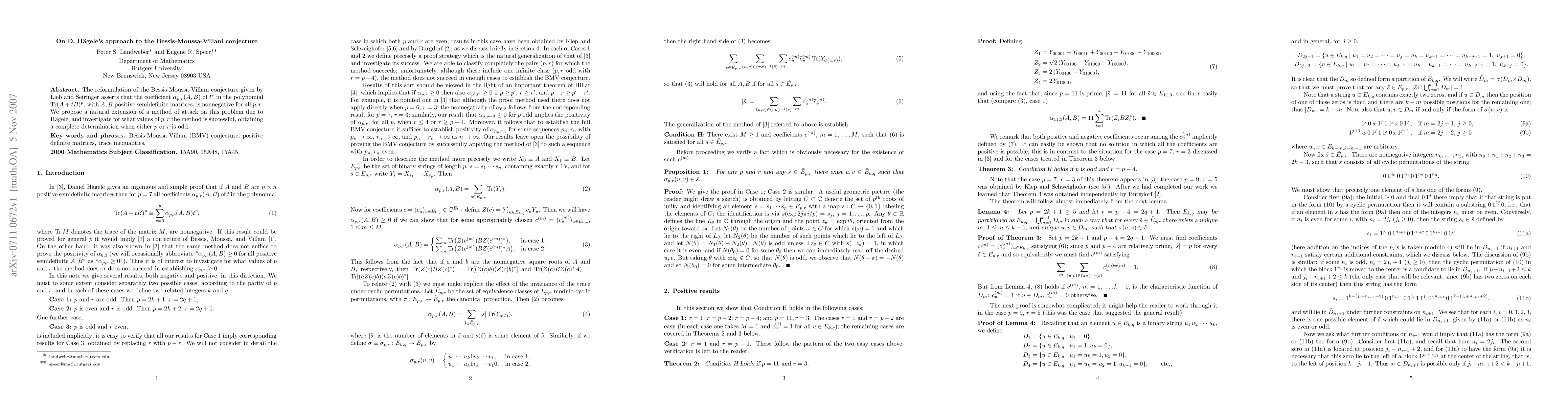 The reformulation of the Bessis-Moussa-Villani conjecture given by Lieb and Seiringer asserts that the coefficient of t^r in the polynomial Trace[(A+tB)^p], with A and B positive semidefinite matrices, is nonnegative for all p and r. We propose a natural extension of a method of attack on this problem due to Haegele, and investigate for what values of p and r the method is successful, obtaining a complete determination when either p or r is odd.