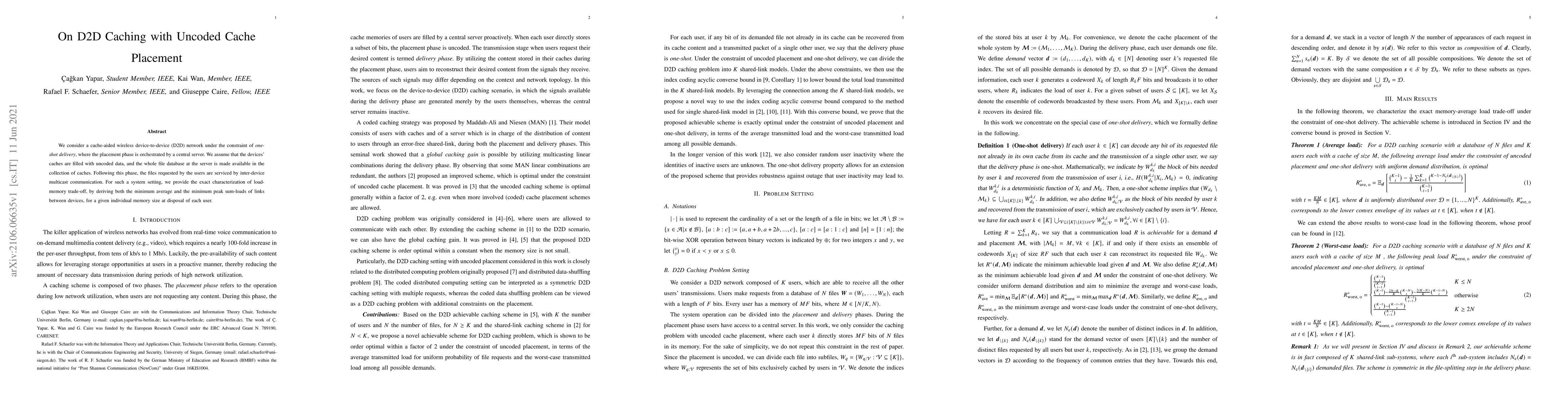 Researchers studied a cache-aided wireless network where devices share uncoded data to deliver files, optimizing load-memory trade-off for minimum average and peak sum-link loads.