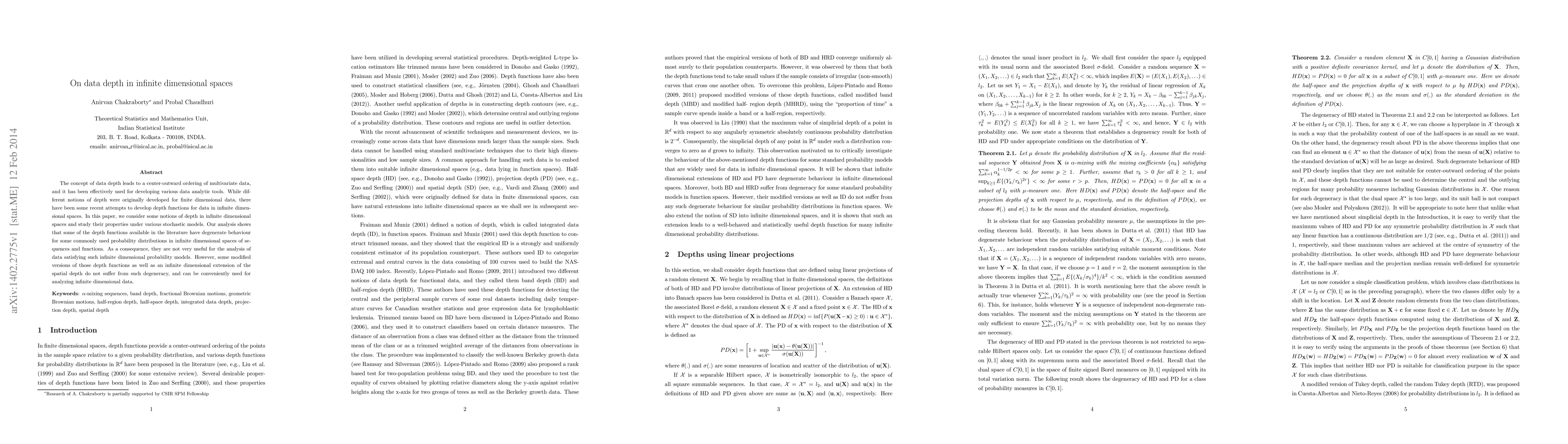 The paper analyzes depth functions in infinite-dimensional spaces, examining their properties under various stochastic models and comparing them with finite-dimensional depth functions.