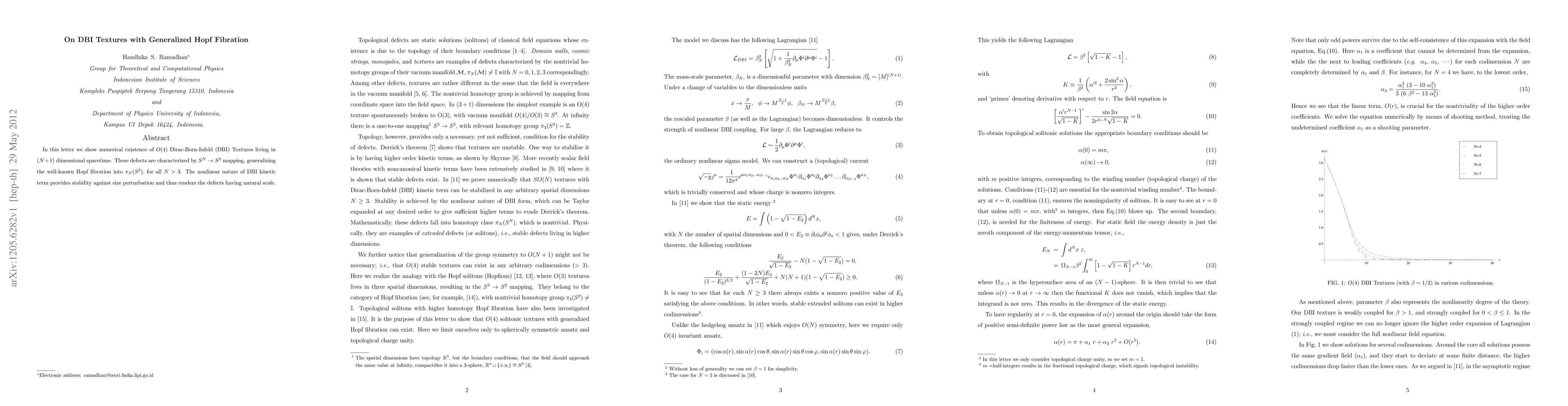 In this letter we show numerical existence of O(4) Dirac-Born-Infeld (DBI) Textures living in (N +1) dimensional spacetime. These defects are characterized by $S^N\rightarrow S^3$ mapping, generalizing the well-known Hopf fibration into ?$\pi_N (S^3)$, for all N > 3. The nonlinear nature of DBI kinetic term provides stability against size perturbation and thus renders the defects having natural scale.