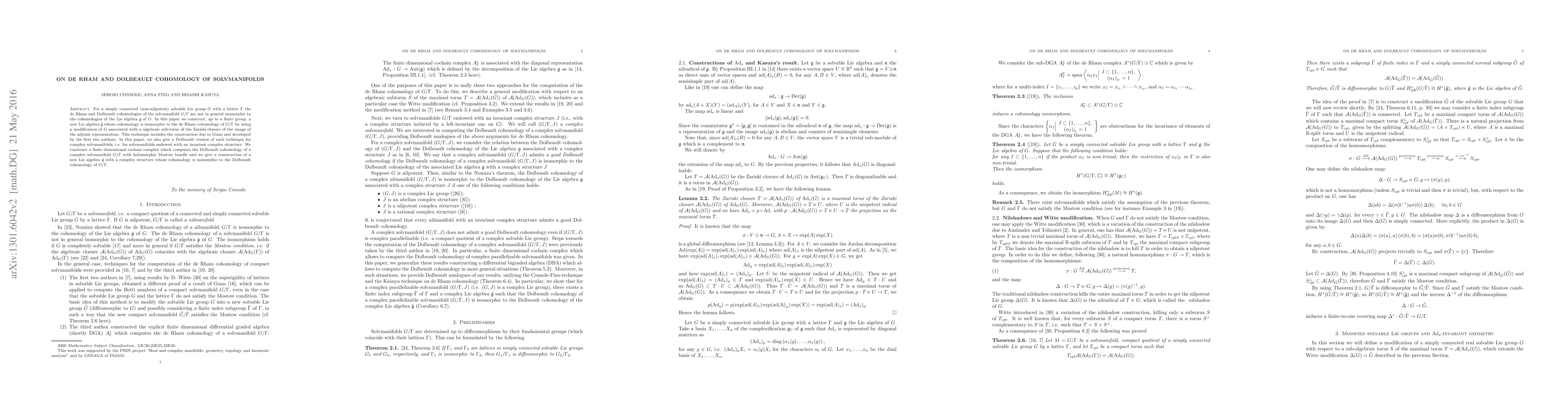 This paper explores the de Rham and Dolbeault cohomologies of solvmanifolds arising from simply connected solvable Lie groups with lattices. It constructs modified Lie algebras $\tilde{\mathfrak g}$ and $\breve{\mathfrak g}$ whose cohomologies correspond to those of the solvmanifolds, extending techniques from Guan and previous authors.