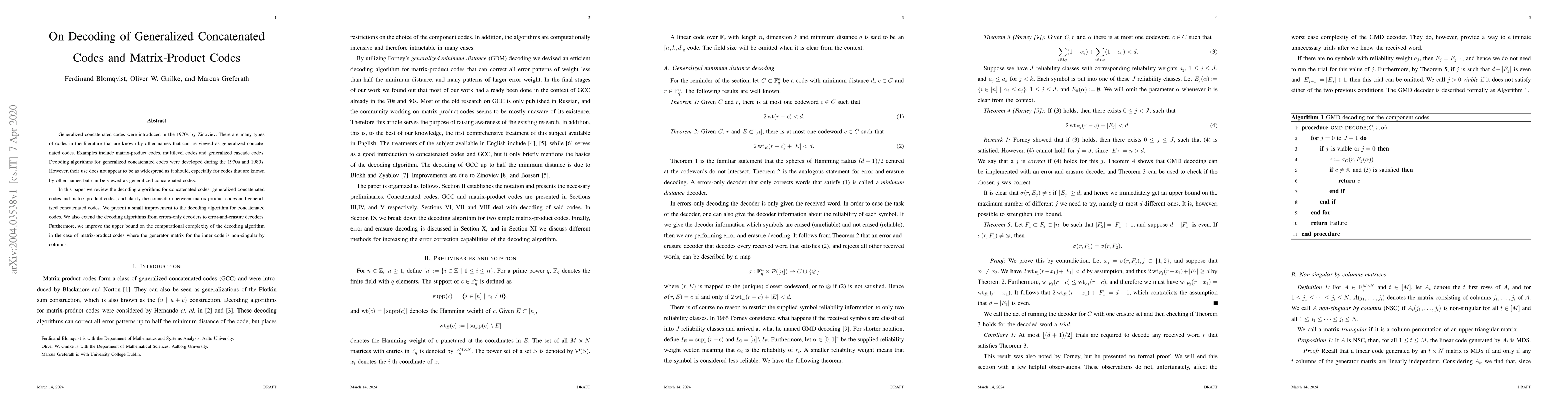 This paper reviews decoding algorithms for concatenated, generalized concatenated, and matrix-product codes, highlighting their connections and presenting improvements, including an enhanced error-and-erasure decoder and a refined computational complexity upper bound for non-singular matrix-product codes.