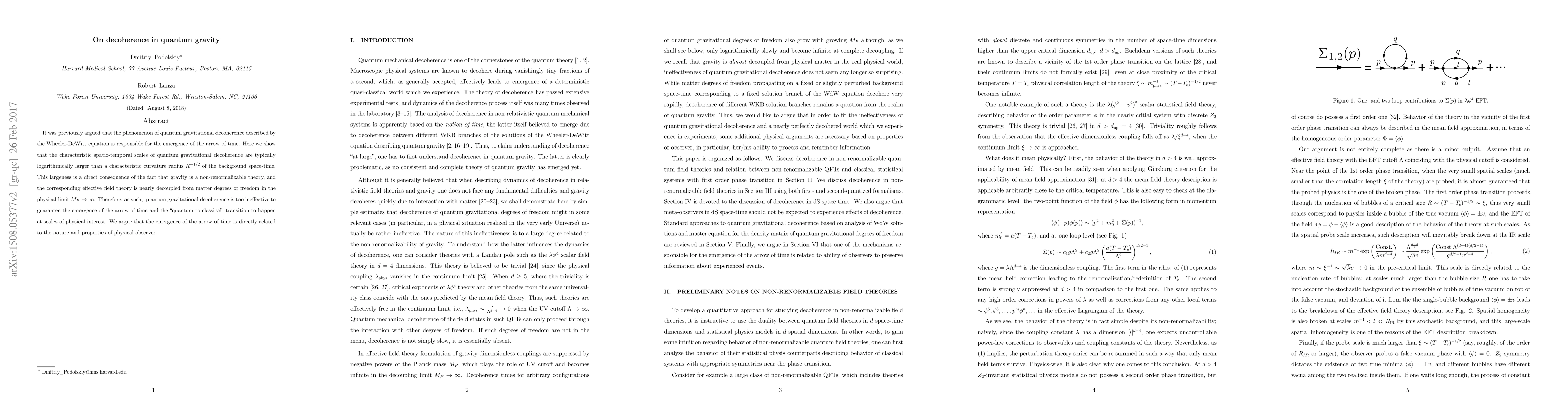 It was previously argued that the phenomenon of quantum gravitational decoherence described by the Wheeler-DeWitt equation is responsible for the emergence of the arrow of time. Here we show that the characteristic spatio-temporal scales of quantum gravitational decoherence are typically logarithmically larger than a characteristic curvature radius $R^{-1/2}$ of the background space-time with a factor under the logarithm proportional to $M_{P}^{2}/R$. This largeness is a direct consequence of the fact that gravity is a non-renormalizable theory, as the corresponding effective field theory is nearly decoupled from matter degrees of freedom in the physical limit $M_{P}\to\infty$. Therefore, as such, quantum gravitational decoherence is too ineffective to guarantee the emergence of the arrow of time at scales of physical interest. We argue that the emergence of the arrow of time is directly related to the nature and properties of physical observer.