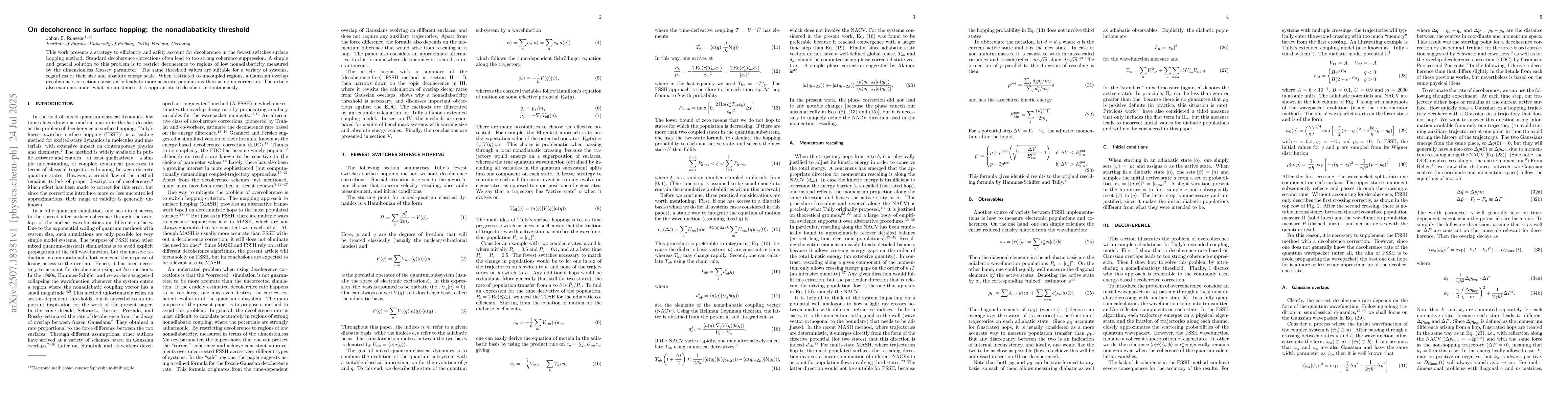 This work presents a strategy to efficiently and safely account for decoherence in the fewest switches surface hopping method. Standard decoherence corrections often lead to too strong coherence suppression. A simple and general solution to this problem is to restrict decoherence to regions of low nonadiabaticity measured by the dimensionless Massey parameter. The same threshold values are suitable for a variety of systems, regardless of their size and absolute energy scale. When restricted to uncoupled regions, a Gaussian overlap decoherence correction consistently leads to more accurate populations than using no correction. The article also examines under what circumstances it is appropriate to decohere instantaneously.
