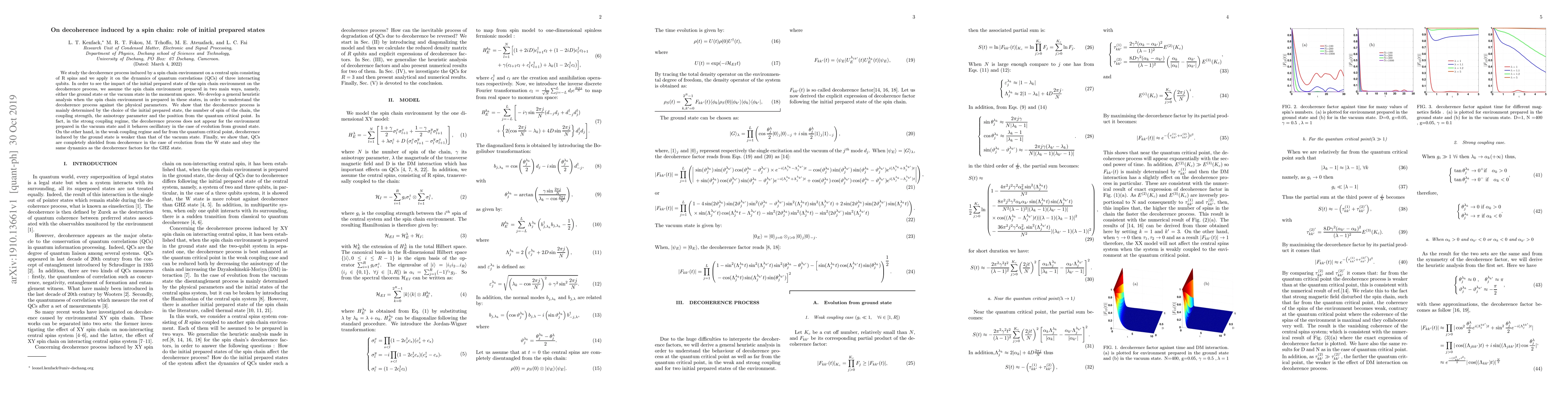 This paper examines how the initial state of a spin chain environment influences decoherence on a central spin and the dynamics of quantum correlations among three interacting qubits. It finds that the decoherence process is heavily dependent on the initial state, with no decoherence observed for vacuum state environments in strong coupling and oscillatory behavior for ground state environments.