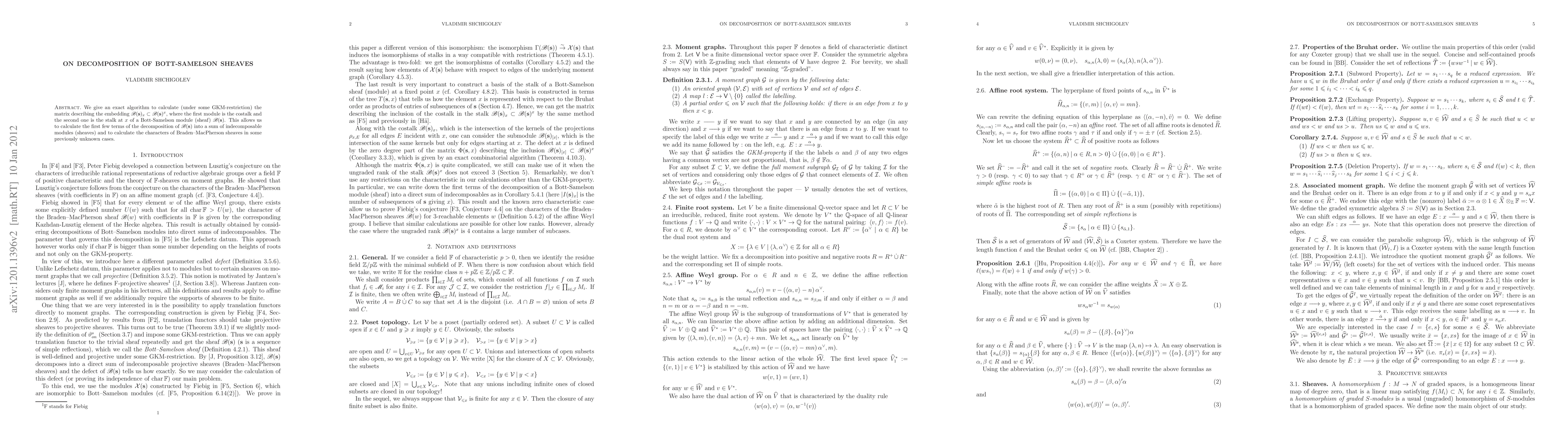 We give an exact algorithm to calculate (under some GKM-restriction) the matrix describing the embedding $\B(\s)_x\subset\B(\s)^x$, where the first module is the costalk and the second one is the stalk at $x$ of a Bott-Samelson module (sheaf) $\B(\s)$. This allows us to calculate the first few terms of the decomposition of $\B(\s)$ into a sum of indecomposable modules (sheaves) and to calculate the characters of Braden--MacPherson sheaves in some previously unknown cases.
