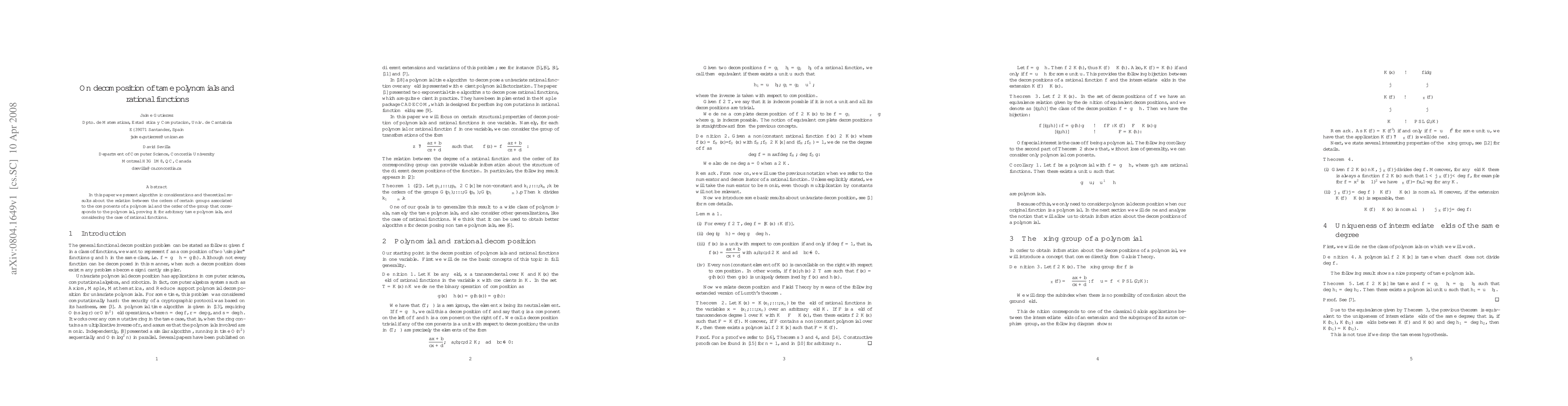 This research explores how certain symmetry groups relate to the decomposition of tame polynomials and rational functions, providing algorithms and theoretical insights applicable to these mathematical objects. The findings help understand the structure and complexity of these functions, with implications for algebra and computational mathematics.