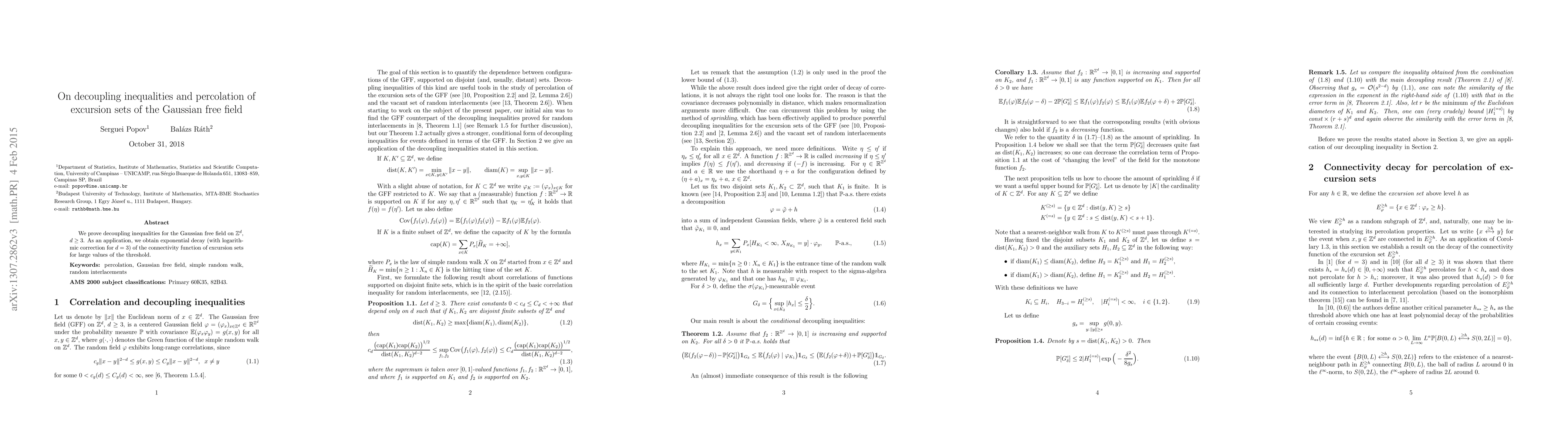 This paper proves decoupling inequalities for the Gaussian free field in d-dimensions, leading to exponential decay of excursion set connectivity with large threshold values.