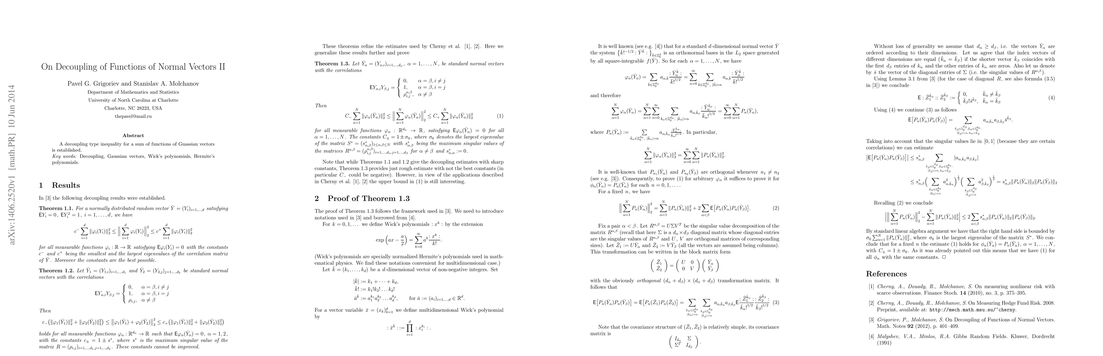A decoupling type inequality for a sum of functions of Guassian vectors is established.