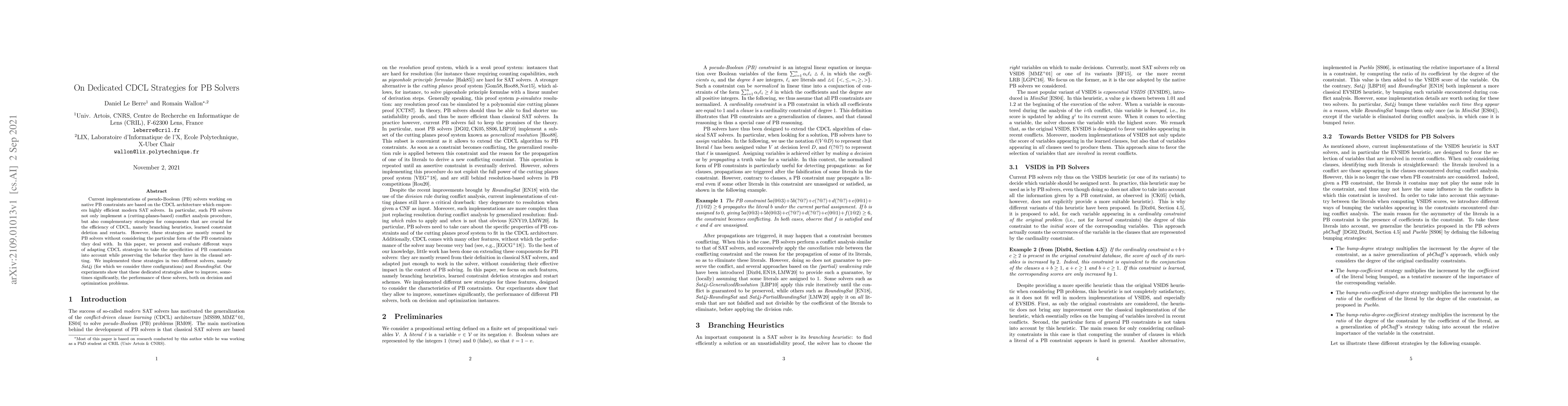 This paper investigates specialized CDCL strategies for pseudo-Boolean solvers, adapting these methods to better handle PB constraints and demonstrating significant performance improvements in both decision and optimization tasks. The strategies were implemented in Sat4j and RoundingSat, showing enhanced solver efficiency.