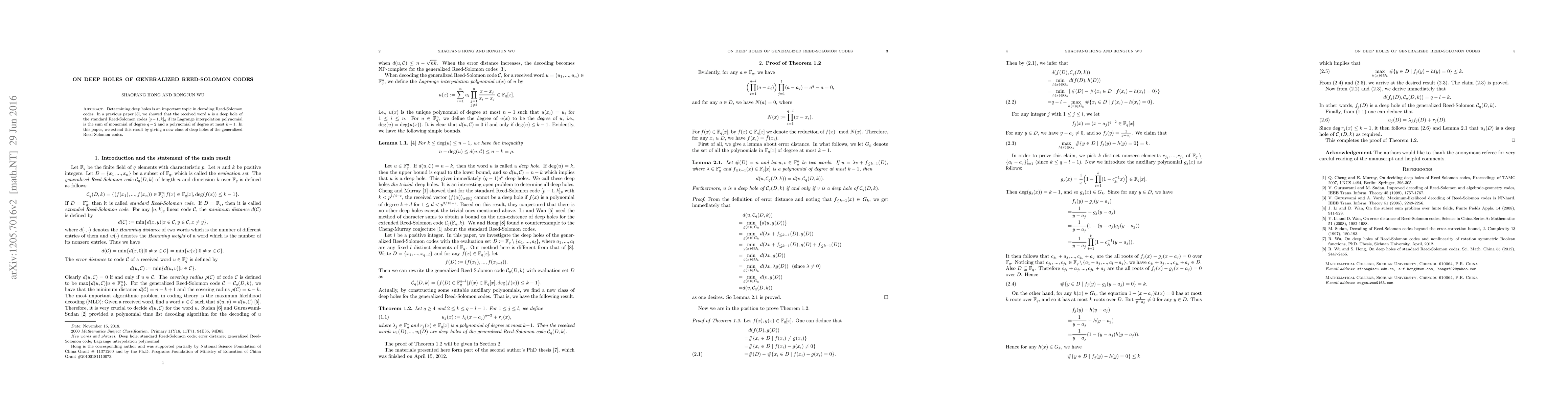 This paper extends the concept of deep holes to generalized Reed-Solomon codes, building on previous work that identified deep holes in standard Reed-Solomon codes through specific Lagrange interpolation polynomials. The authors introduce a new class of deep holes for these generalized codes.