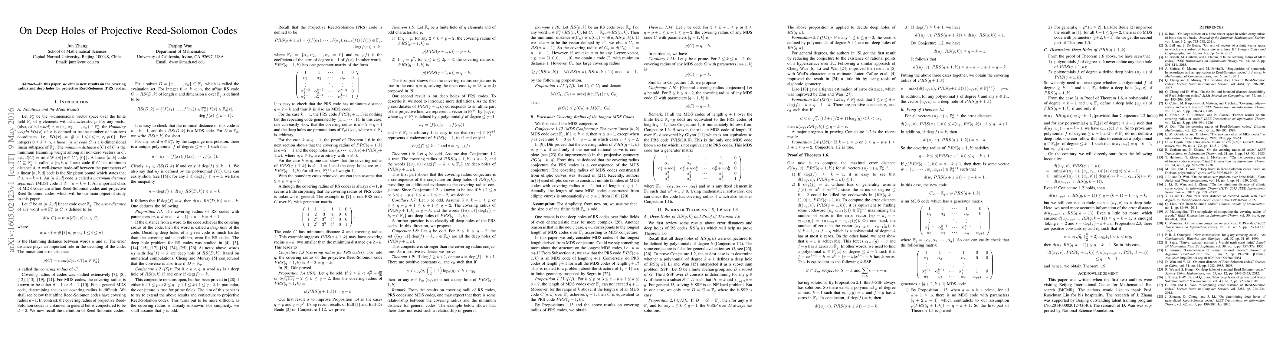 A novel approach was developed to determine deep holes in Reed-Solomon codes, which has significant implications for the design and analysis of error-correcting codes.