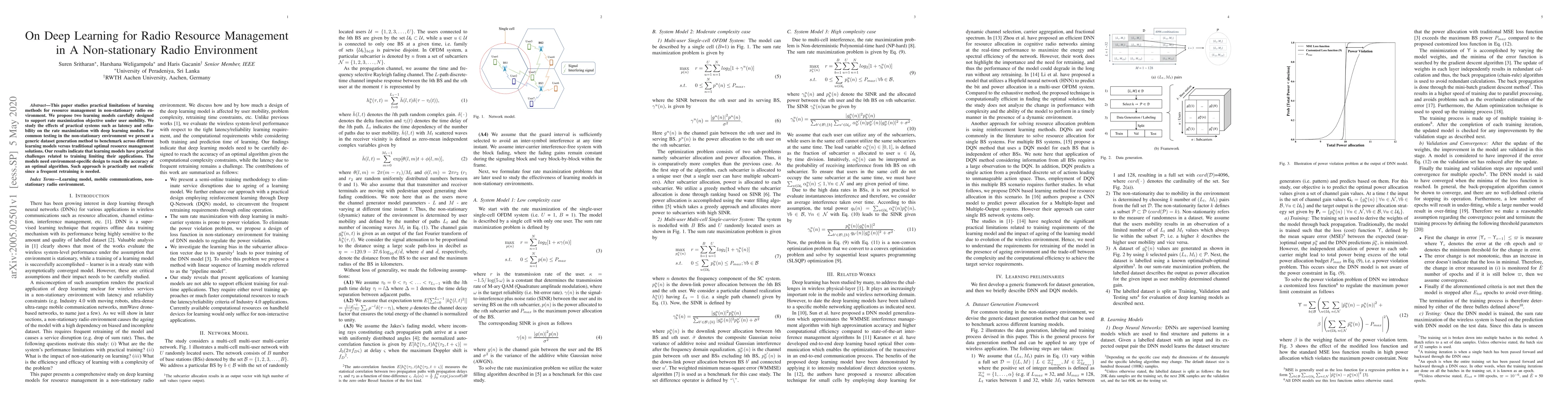 This paper studies practical limitations of learning methods for resource management in non-stationary radio environment. We propose two learning models carefully designed to support rate maximization objective under user mobility. We study the effects of practical systems such as latency and reliability on the rate maximization with deep learning models. For common testing in the non-stationary environment we present a generic dataset generation method to benchmark across different learning models versus traditional optimal resource management solutions. Our results indicate that learning models have practical challenges related to training limiting their applications. The models need environment-specific design to reach the accuracy of an optimal algorithm.