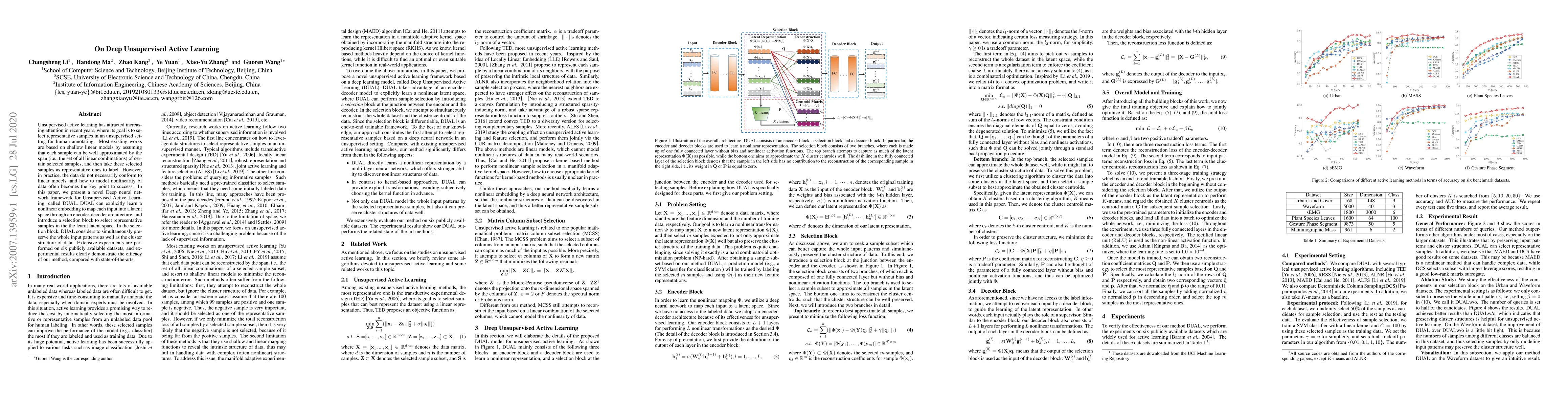Unsupervised active learning has attracted increasing attention in recent years, where its goal is to select representative samples in an unsupervised setting for human annotating. Most existing works are based on shallow linear models by assuming that each sample can be well approximated by the span (i.e., the set of all linear combinations) of certain selected samples, and then take these selected samples as representative ones to label. However, in practice, the data do not necessarily conform to linear models, and how to model nonlinearity of data often becomes the key point to success. In this paper, we present a novel Deep neural network framework for Unsupervised Active Learning, called DUAL. DUAL can explicitly learn a nonlinear embedding to map each input into a latent space through an encoder-decoder architecture, and introduce a selection block to select representative samples in the the learnt latent space. In the selection block, DUAL considers to simultaneously preserve the whole input patterns as well as the cluster structure of data. Extensive experiments are performed on six publicly available datasets, and experimental results clearly demonstrate the efficacy of our method, compared with state-of-the-arts.