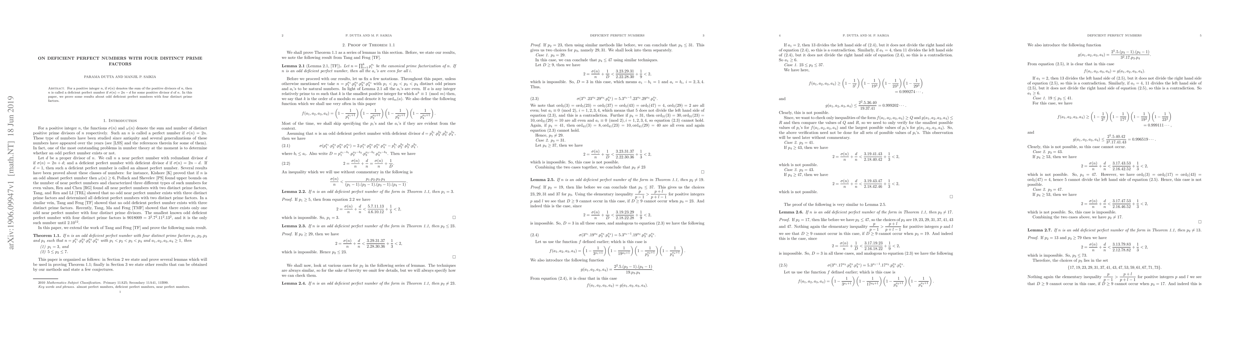 This paper proves new results regarding odd deficient perfect numbers that possess exactly four distinct prime factors, exploring their properties and characteristics. The study focuses on the relationship between the sum of divisors and the number itself in these specific cases.