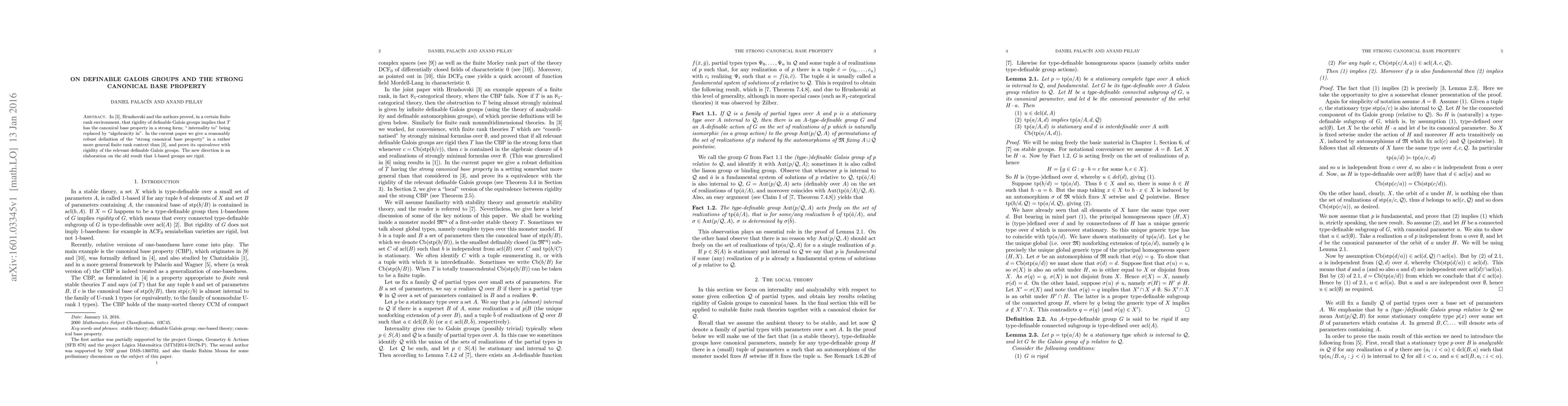 Researchers prove equivalence between strong canonical base property in a general finite rank context and rigidity of definable Galois groups, building on previous work showing 1-based groups are rigid.