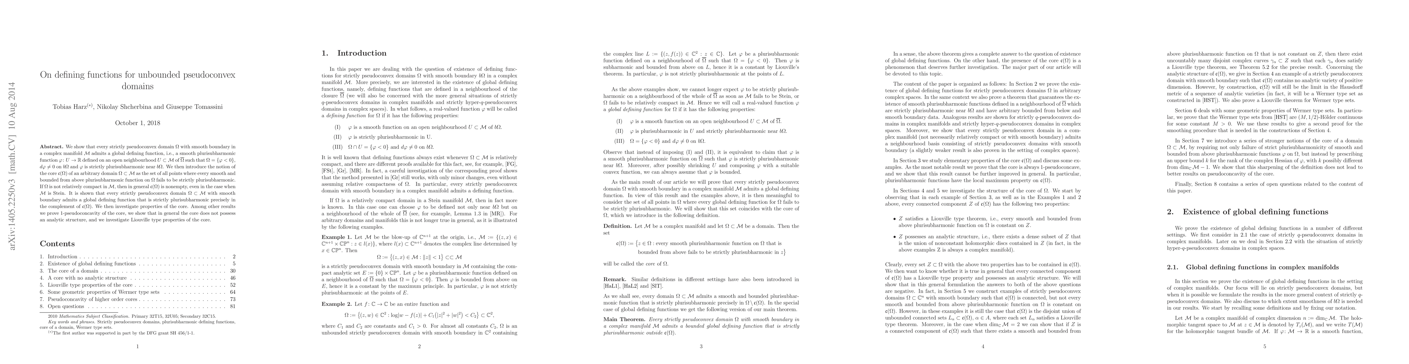 This paper demonstrates that strictly pseudoconvex domains with smooth boundaries in complex manifolds admit global defining functions and introduces the concept of the core of a domain, which consists of points where smooth plurisubharmonic functions fail to be strictly plurisubharmonic. It explores properties of the core, including its 1-pseudoconcavity and lack of an analytic structure.