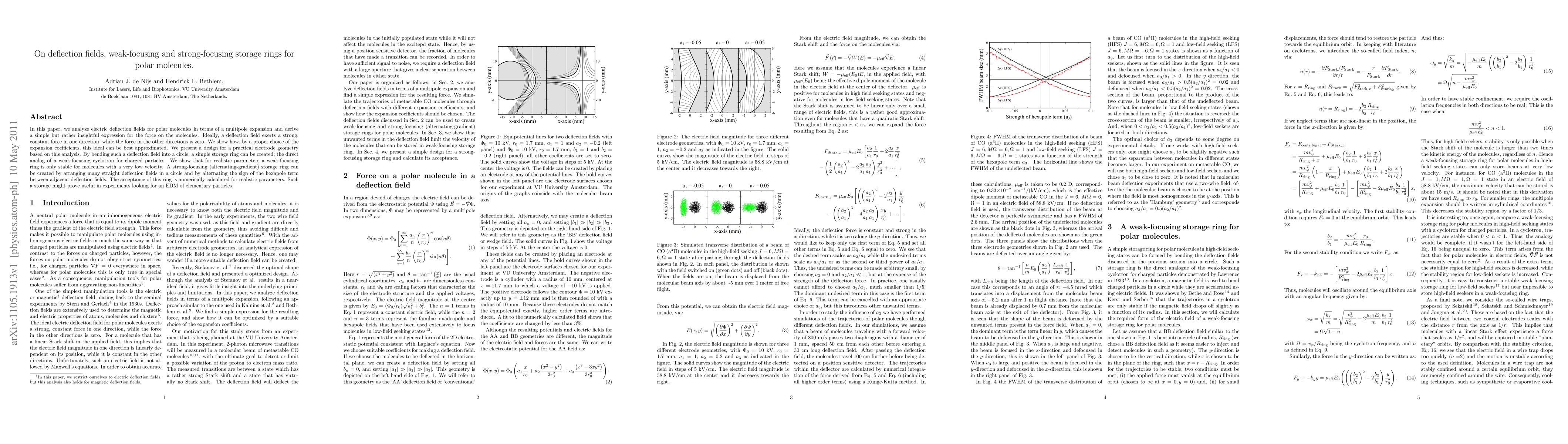 In this paper, we analyze electric deflection fields for polar molecules in terms of a multipole expansion and derive a simple but rather insightful expression for the force on the molecules. Ideally, a deflection field exerts a strong, constant force in one direction, while the force in the other directions is zero. We show how, by a proper choice of the expansion coefficients, this ideal can be best approximated. We present a design for a practical electrode geometry based on this analysis. By bending such a deflection field into a circle, a simple storage ring can be created; the direct analog of a weak-focusing cyclotron for charged particles. We show that for realistic parameters a weak-focusing ring is only stable for molecules with a very low velocity. A strong-focusing (alternating-gradient) storage ring can be created by arranging many straight deflection fields in a circle and by alternating the sign of the hexapole term between adjacent deflection fields. The acceptance of this ring is numerically calculated for realistic parameters. Such a storage might prove useful in experiments looking for an EDM of elementary particles.