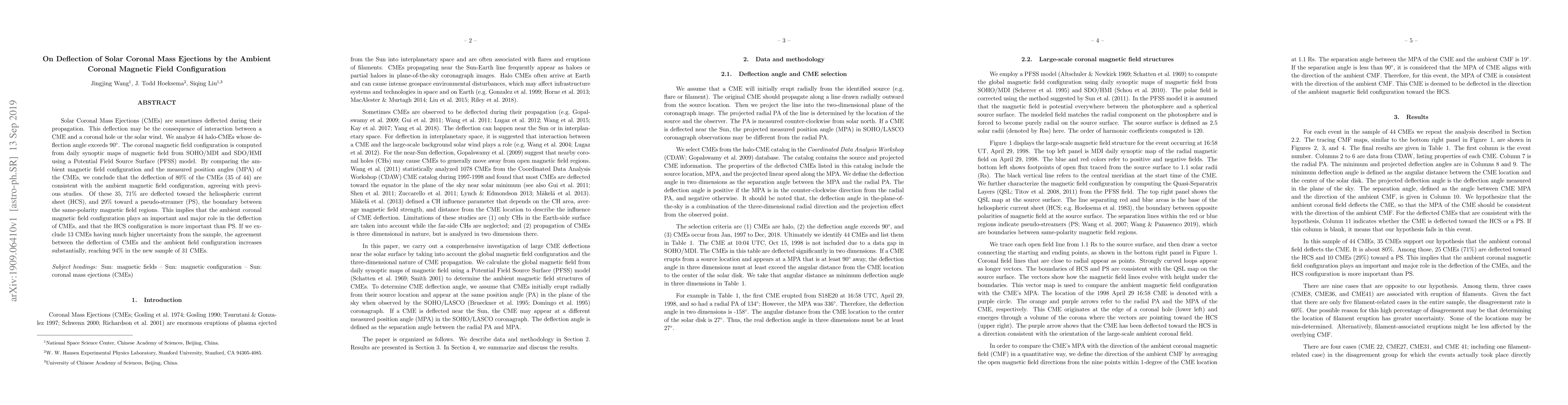 Solar Coronal Mass Ejections (CMEs) are sometimes deflected during their propagation. This deflection may be the consequence of interaction between a CME and a coronal hole or the solar wind. We analyze 44 halo-CMEs whose deflection angle exceeds 90 degrees. The coronal magnetic field configuration is computed from daily synoptic maps of magnetic field from SOHO/MDI and SDO/HMI using a Potential Field Source Surface (PFSS) model. By comparing the ambient magnetic field configuration and the measured position angles (MPA) of the CMEs, we conclude that the deflection of 80% of the CMEs (35 of 44) are consistent with the ambient magnetic field configuration, agreeing with previous studies. Of these 35, 71% are deflected toward the heliospheric current sheet (HCS), and 29 degrees toward a pseudo-streamer (PS), the boundary between the same-polarity magnetic field regions. This implies that the ambient coronal magnetic field configuration plays an important and major role in the deflection of CMEs, and that the HCS configuration is more important than PS. If we exclude 13 CMEs having much higher uncertainty from the sample, the agreement between the deflection of CMEs and the ambient field configuration increases substantially, reaching 94% in the new sample of 31 CMEs.
