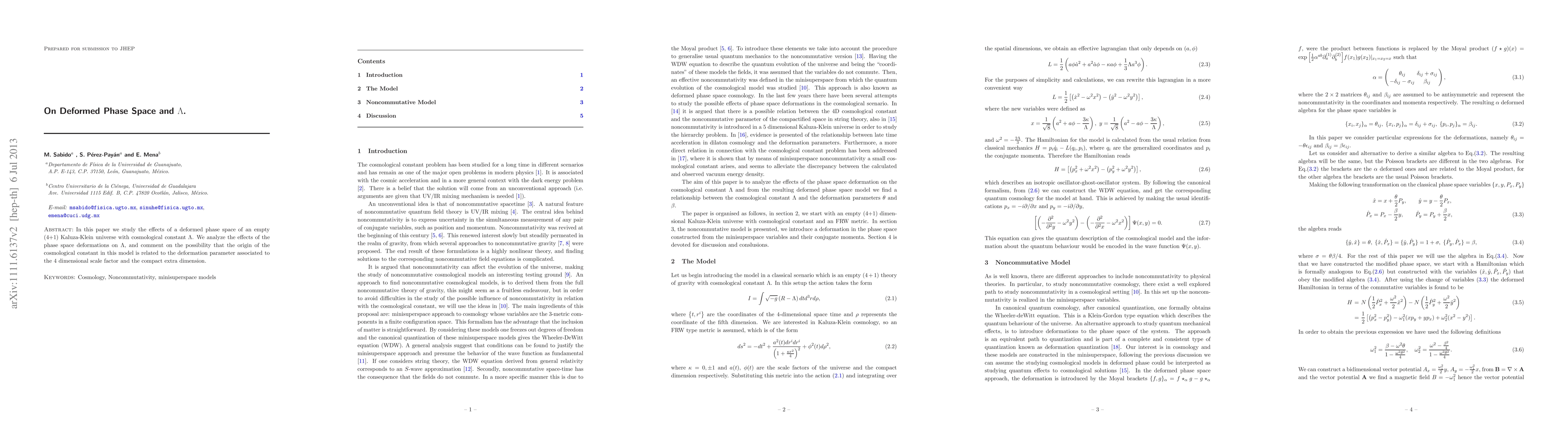 In this letter we study the effects of a noncommutative in the phase space of an empty (4+1) Kaluza-Klein universe with cosmological constant. We analyze the effects of the noncommutative deformations on the cosmological constant. Finally we comment on the possibility that the origin of the cosmological constant in this model, is related to the noncommutativity between the 4 dimensional scale factor and the compact extra dimension.