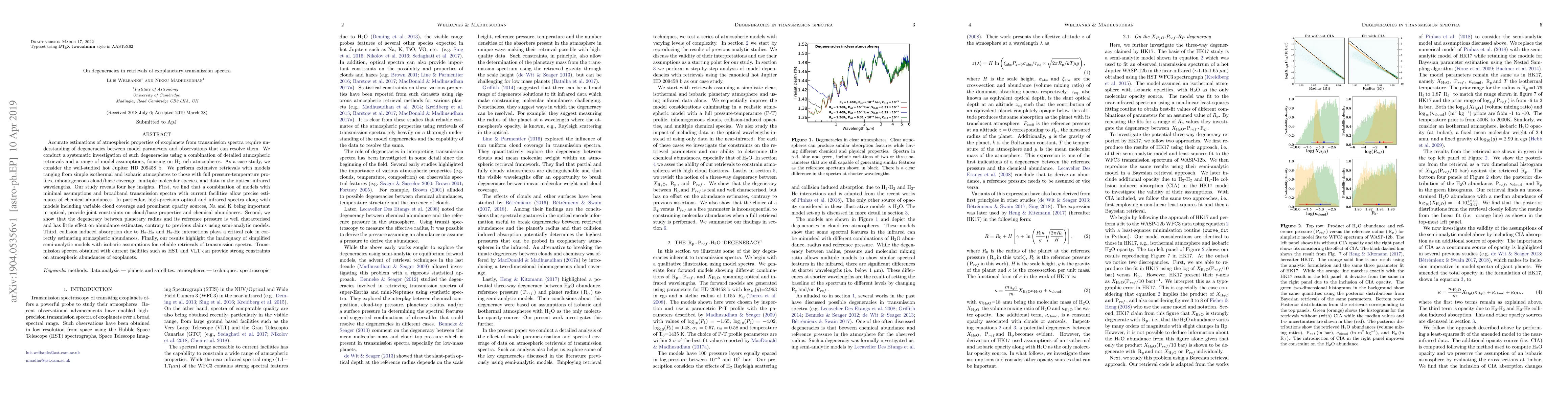 This paper investigates degeneracies in exoplanetary transmission spectra retrievals, focusing on H$_2$-rich atmospheres of the hot Jupiter HD 209458 b. It finds that precise estimates of chemical abundances require detailed models and broadband spectra, highlighting the importance of cloud coverage and molecular species like Na and K.
