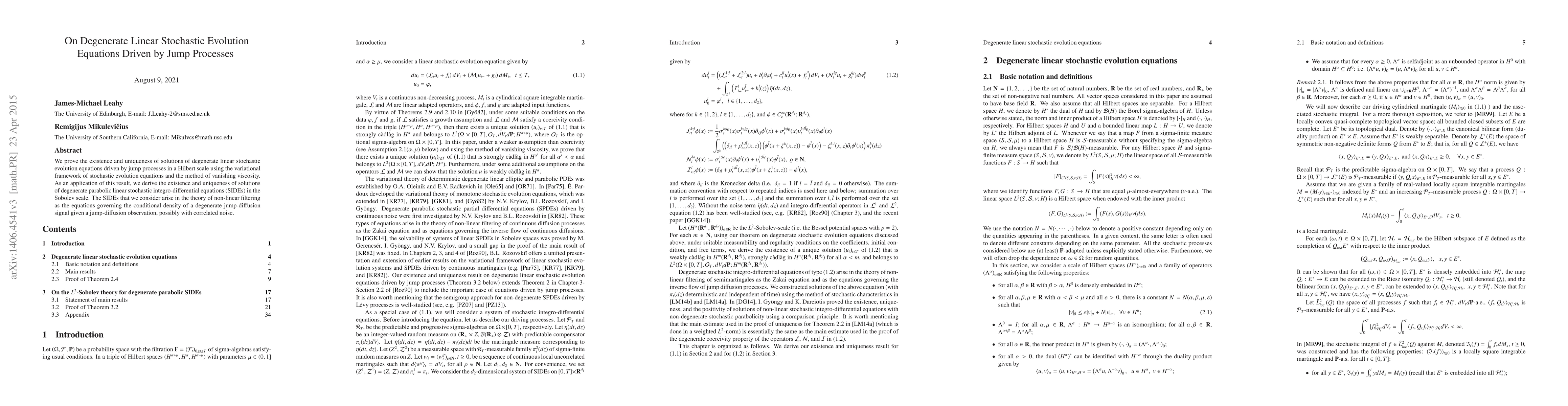 This paper establishes the existence and uniqueness of solutions for degenerate linear stochastic evolution equations driven by jump processes using variational methods and vanishing viscosity. It also applies these results to derive similar properties for degenerate parabolic linear stochastic integro-differential equations, which are relevant in the theory of non-linear filtering.