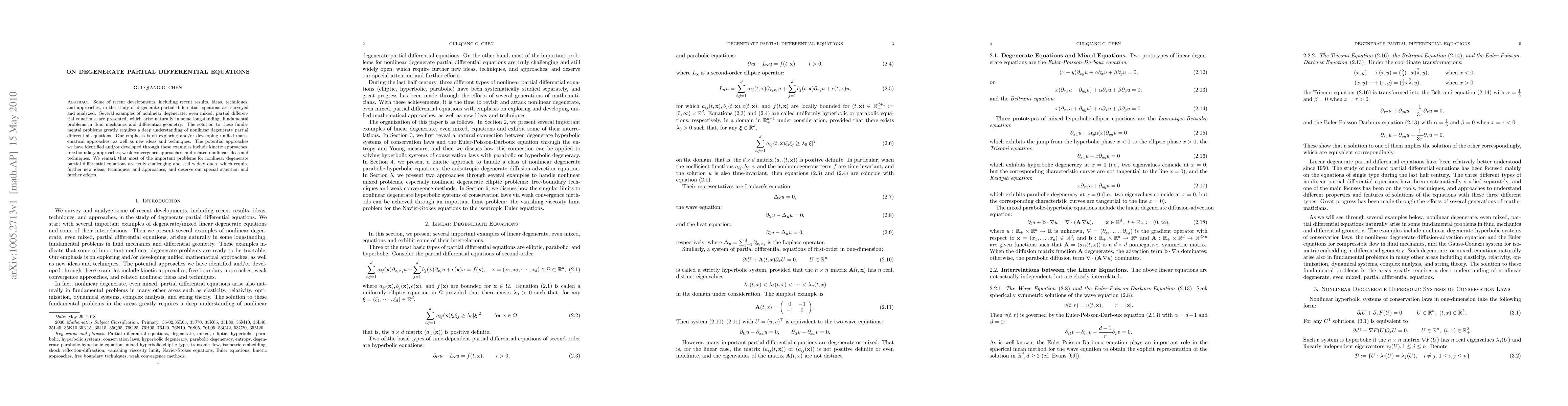 This paper surveys recent advancements in the study of degenerate partial differential equations, focusing on nonlinear degenerate and mixed types arising in fluid mechanics and differential geometry. It highlights the need for unified mathematical approaches and new techniques, including kinetic, free boundary, and weak convergence methods, to tackle these challenging and open problems.