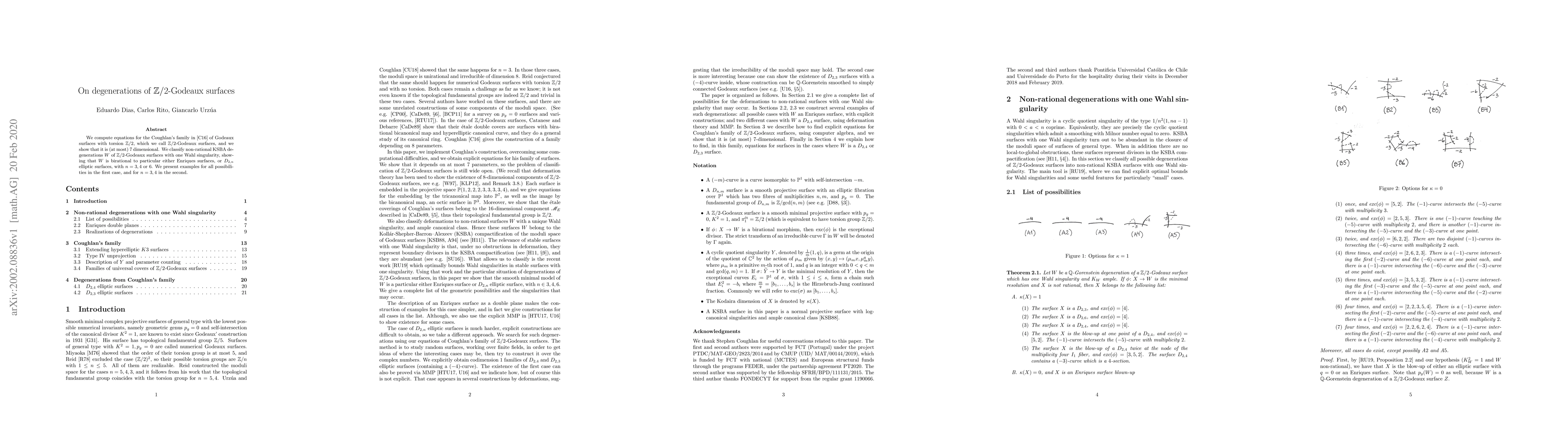 The research employs algebraic geometry techniques, specifically focusing on the study of Godeaux surfaces with $\mathbb Z/2$ torsion. It involves computing equations for Coughlan's family of such surfaces and classifying KSBA degenerations with one Wahl singularity.