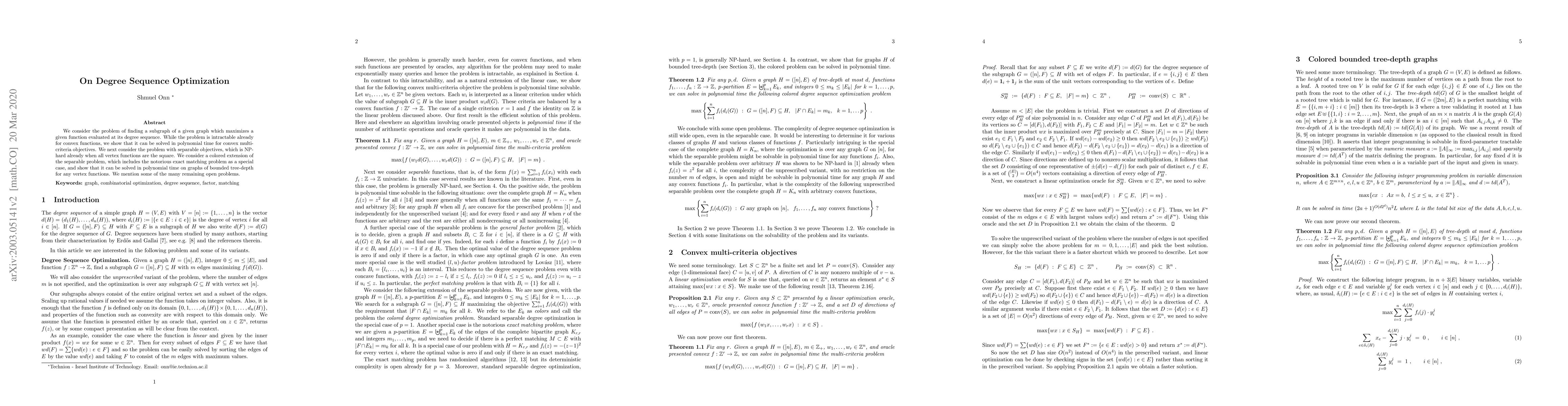 Researchers find that a graph's subgraph with a degree sequence maximizing a convex multi-criteria function can be solved in polynomial time, but solving similar problems for separable objectives remains NP-hard.