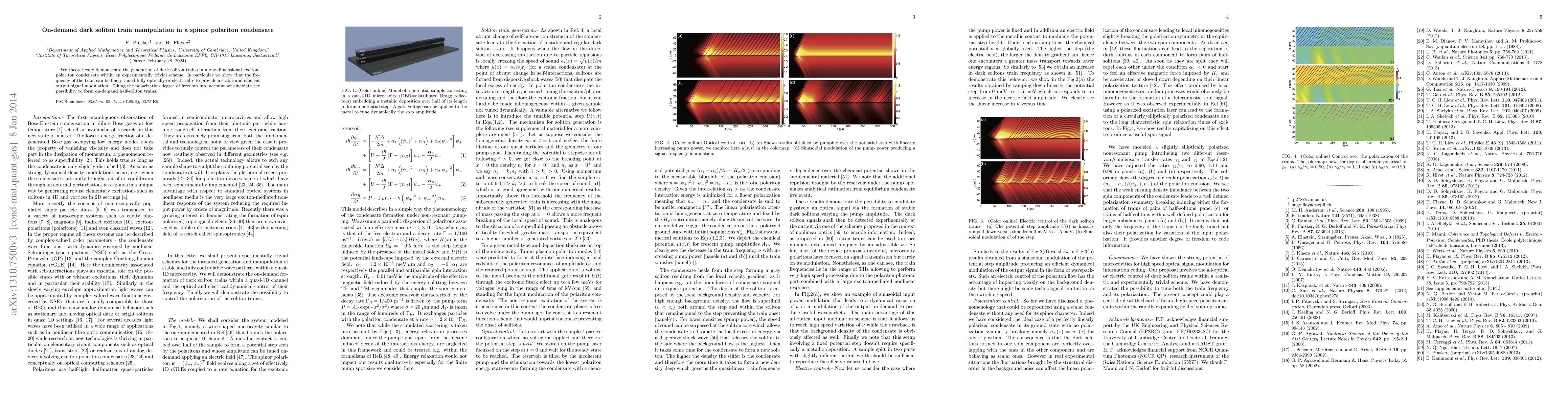 We theoretically demonstrate the generation of dark solitons trains in a one-dimensional exciton- polariton condensate within an experimentally trivial scheme. In particular we show that the fre- quency of the train can be finely tuned either electrically of fully optically to provide a stable and efficient output signal modulation. Taking the polarization degree of freedom into account we elucidate the possibility to additionally form on-demand half-solitons trains.