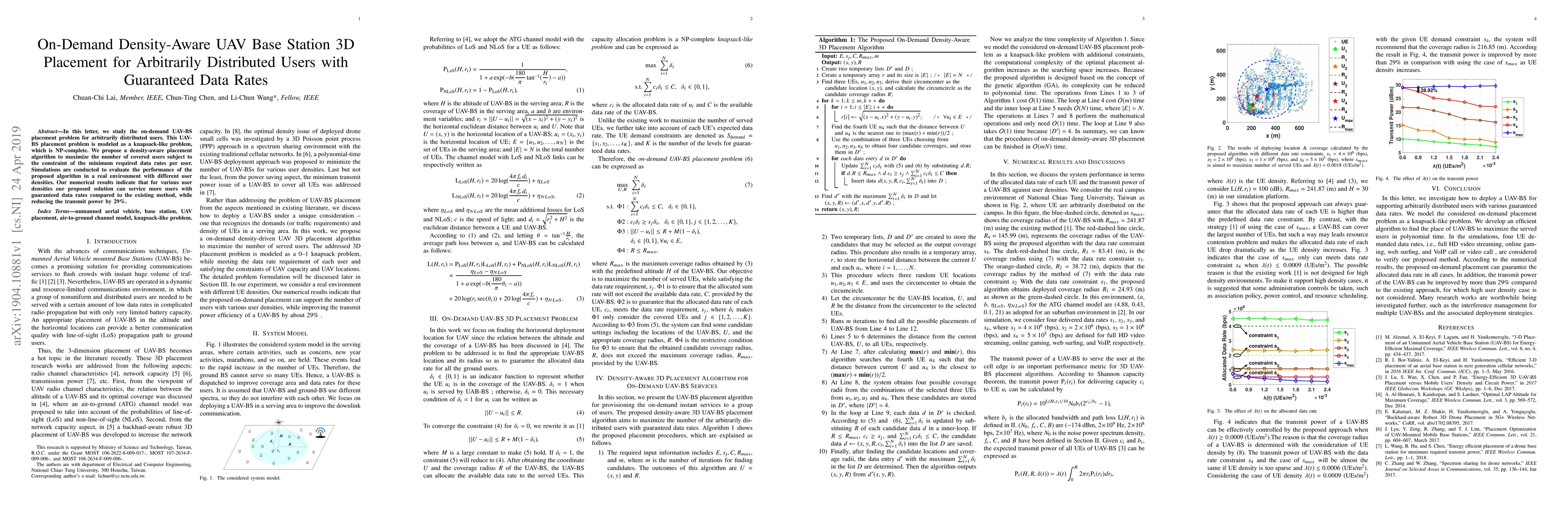 This paper proposes a density-aware algorithm for on-demand 3D placement of UAV base stations to maximize coverage for arbitrarily distributed users, ensuring minimum data rates. Simulation results show that the algorithm outperforms existing methods by servicing more users while reducing transmit power by 29%.