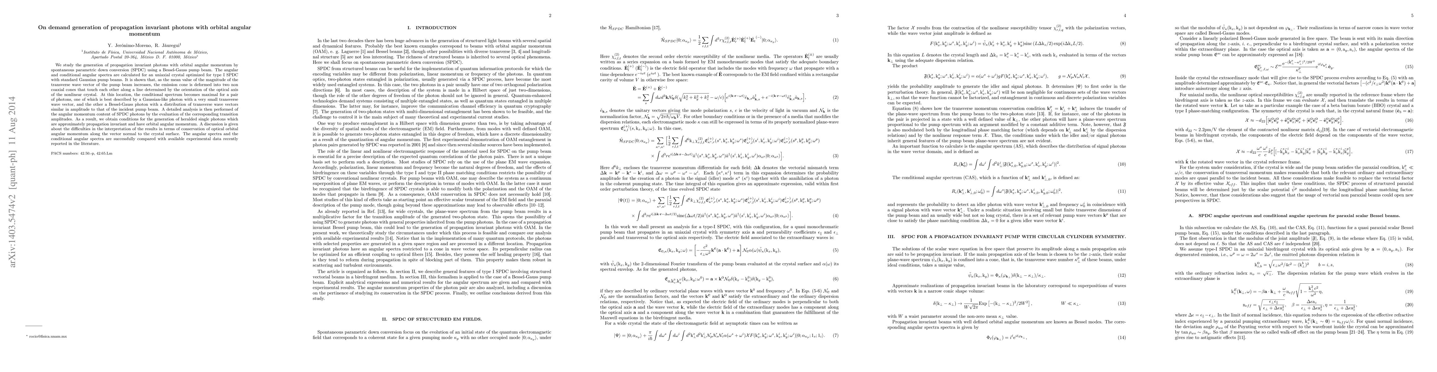 This paper investigates the generation of propagation invariant photons with orbital angular momentum via SPDC using a Bessel-Gauss pump beam. It reveals that optimized uniaxial crystals can produce photons with distinct angular momentum characteristics, leading to the generation of nearly invariant photons under specific conditions.