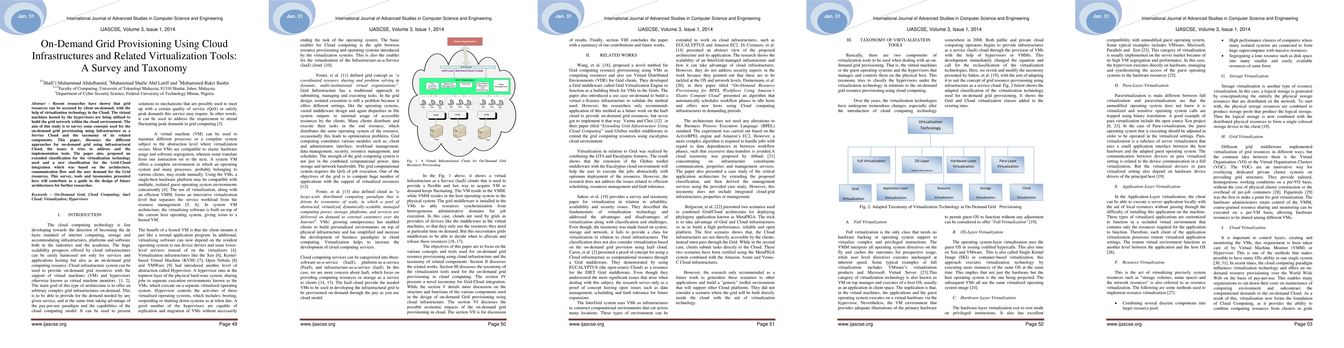 This paper surveys on-demand grid provisioning using Infrastructure as a Service (IaaS) in cloud environments, focusing on virtualization tools and taxonomy. It proposes extended classifications for virtualization and Grid-Cloud integration, aiming to guide future architectural designs.