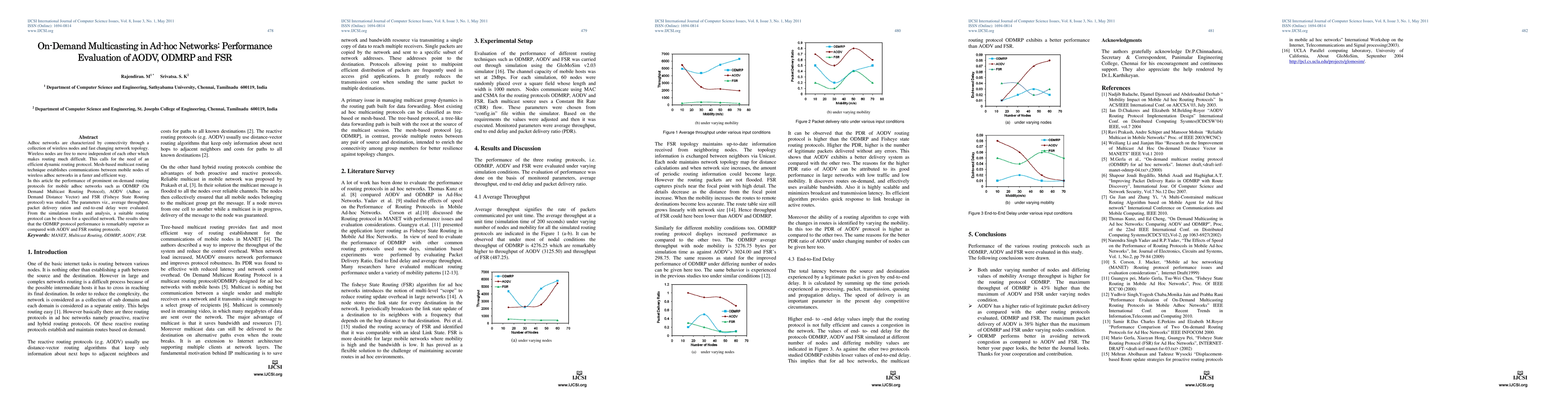 A study compares the performance of three on-demand routing protocols (ODMRP, AODV, and FSR) in mobile ad-hoc networks, finding ODMRP to outperform its peers with superior average throughput, packet delivery ratio, and end-to-end delay.