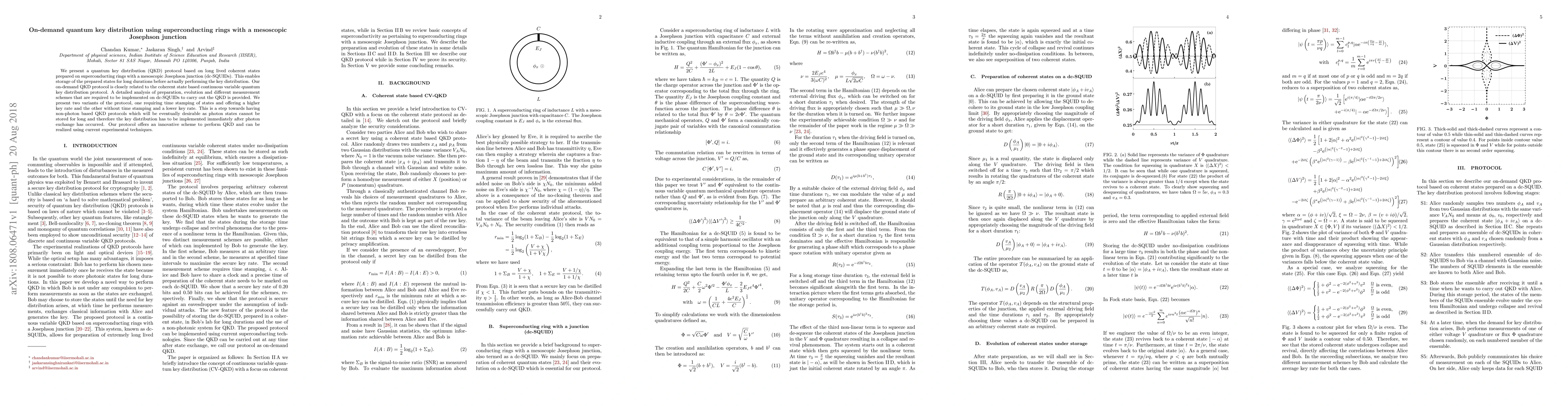 A quantum key distribution protocol based on superconducting rings with a mesoscopic Josephson junction enables long-term storage of prepared states for on-demand QKD, offering an innovative solution to non-photon-based protocols.
