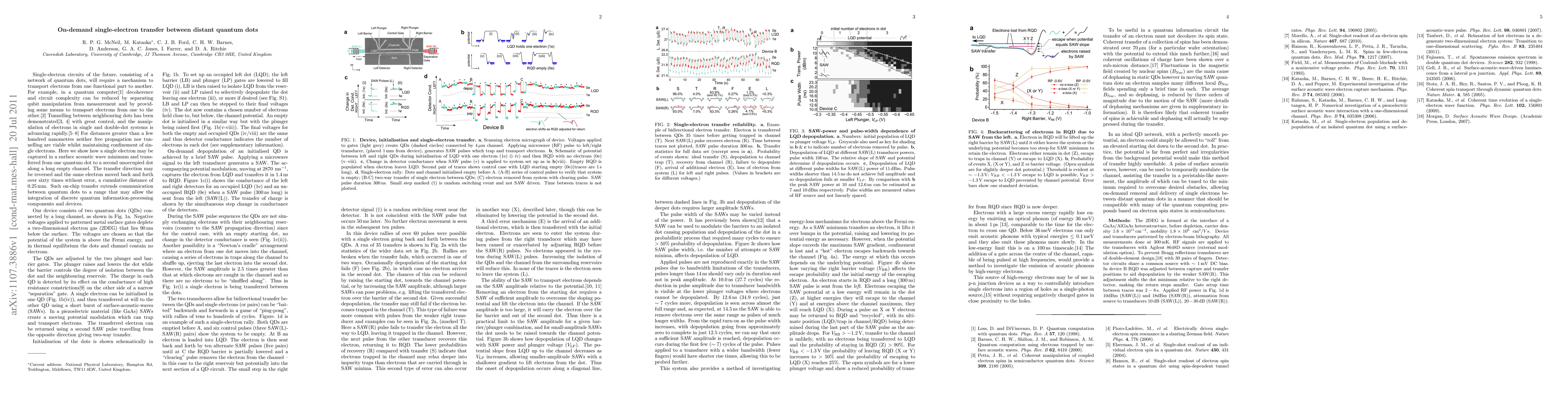 This paper demonstrates the on-demand single-electron transfer over long distances between quantum dots using surface acoustic waves, enabling the movement of electrons back and forth without error, which is crucial for future single-electron circuits and quantum computing.