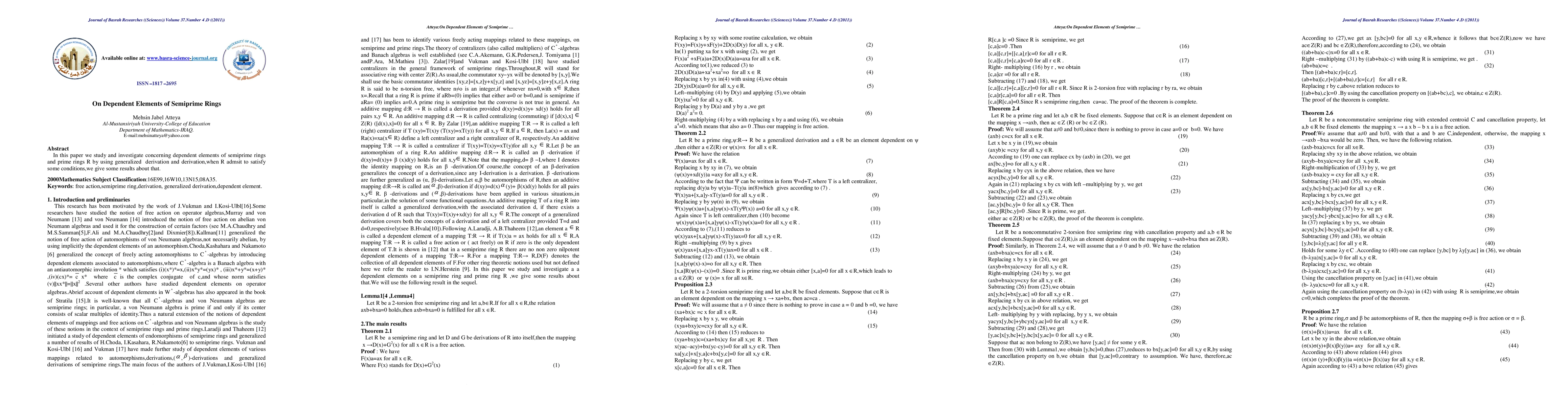 In this paper we study and investigate concerning dependent elements of semiprime rings and prime rings R by using generalized derivation and derivation,when R admsit to satisfy some conditions,we give some results about that.