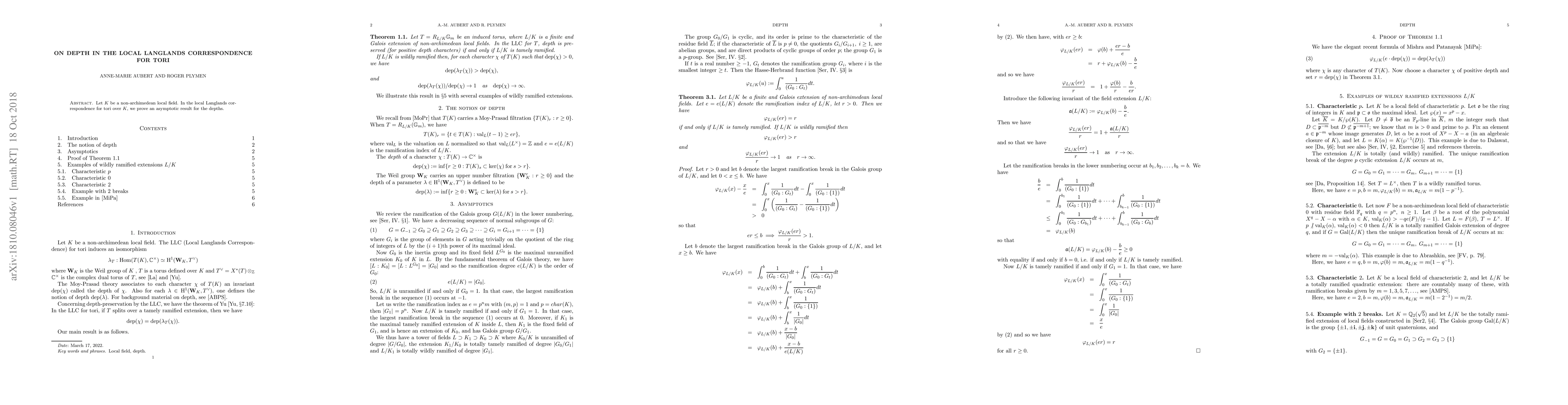 This paper proves an asymptotic result regarding the depths in the local Langlands correspondence for tori over non-archimedean local fields, providing significant insights into the structure of these correspondences.