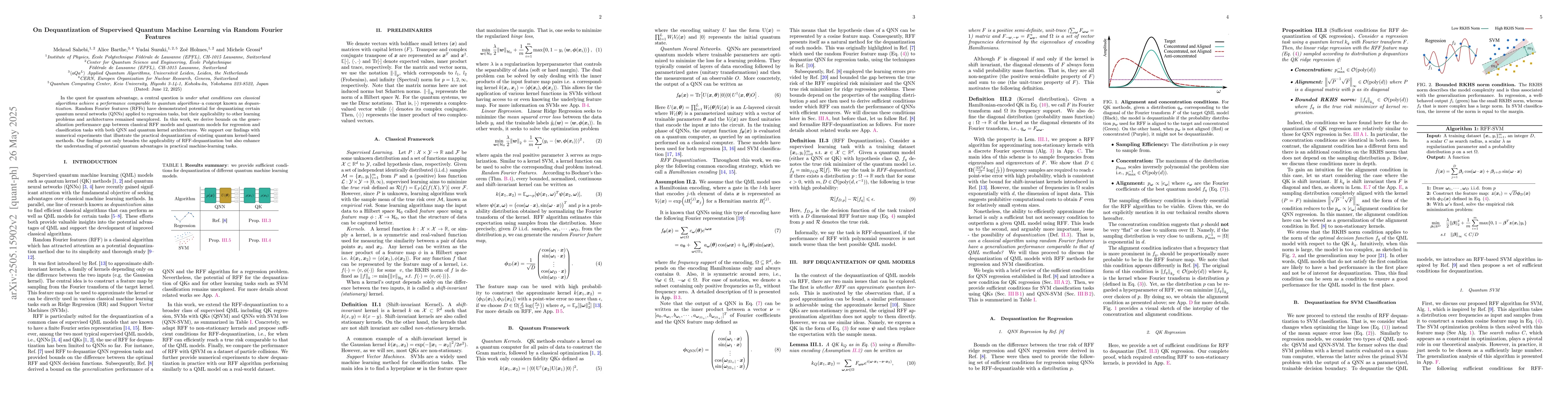 Researchers developed bounds on generalization performance gaps for classical RFF models versus quantum models in regression and classification tasks, demonstrating practical dequantization of existing methods.