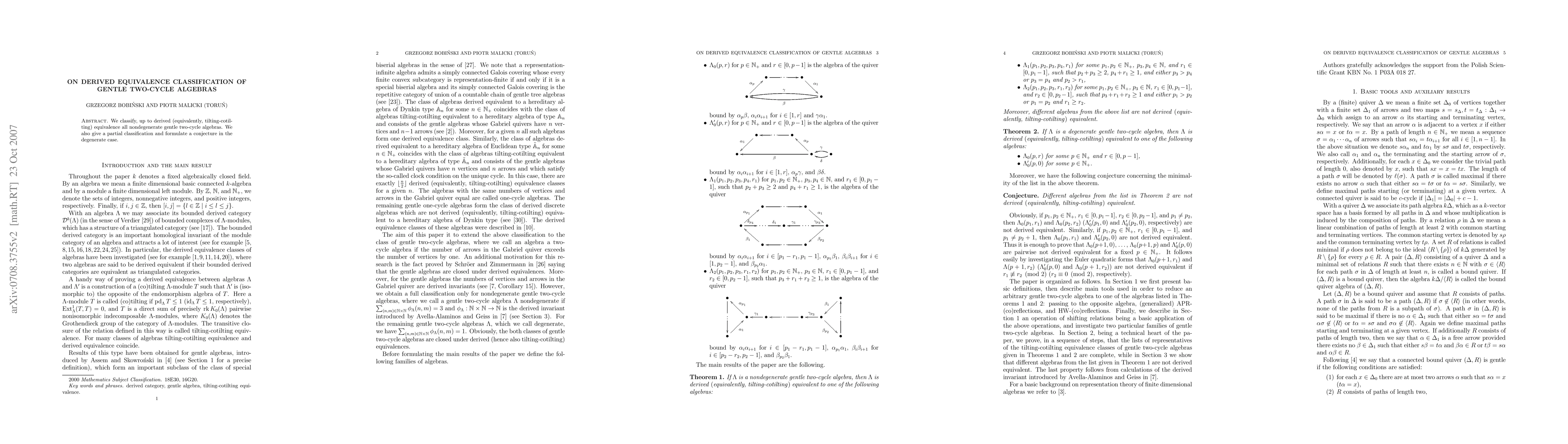 This paper classifies nondegenerate gentle two-cycle algebras up to derived equivalence and provides a partial classification and conjecture for the degenerate case. The focus is on understanding the structure through derived equivalences and tilting-cotilting theory.