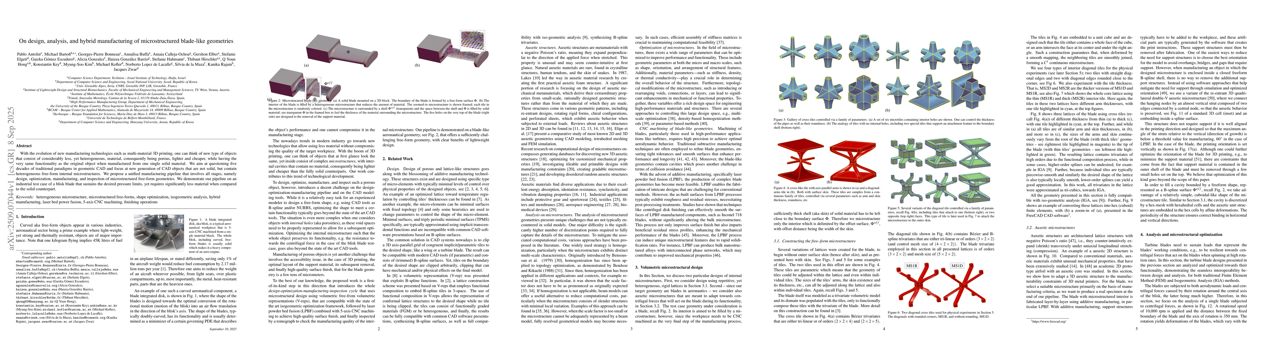 With the evolution of new manufacturing technologies such as multi-material 3D printing, one can think of new type of objects that consist of considerably less, yet heterogeneous, material, consequently being porous, lighter and cheaper, while having the very same functionality as the original object when manufactured from one single solid material. We aim at questioning five decades of traditional paradigms in geometric CAD and focus at new generation of CAD objects that are not solid, but contain heterogeneous free-form internal microstructures. We propose a unified manufacturing pipeline that involves all stages, namely design, optimization, manufacturing, and inspection of microstructured free-form geometries. We demonstrate our pipeline on an industrial test case of a blisk blade that sustains the desired pressure limits, yet requires significantly less material when compared to the solid counterpart.