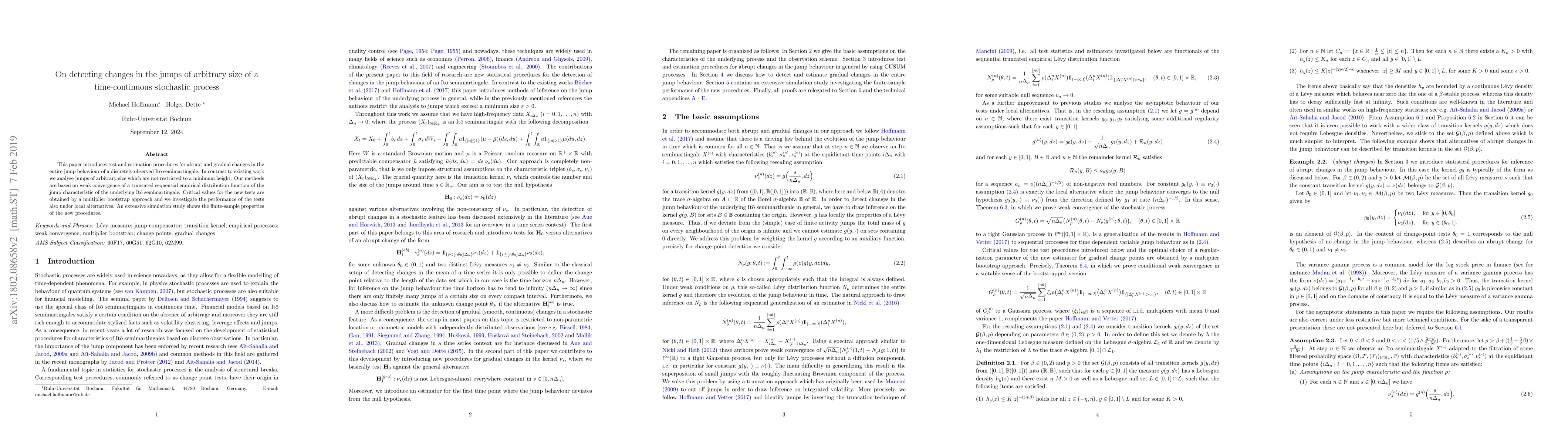This paper introduces new methods for detecting changes in a time-continuous stochastic process with jumps of arbitrary size, offering improved accuracy and robustness compared to existing approaches.
